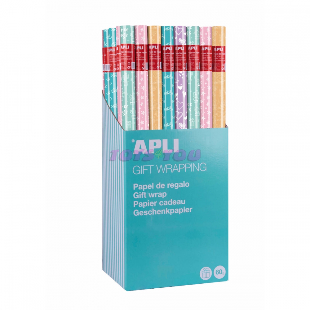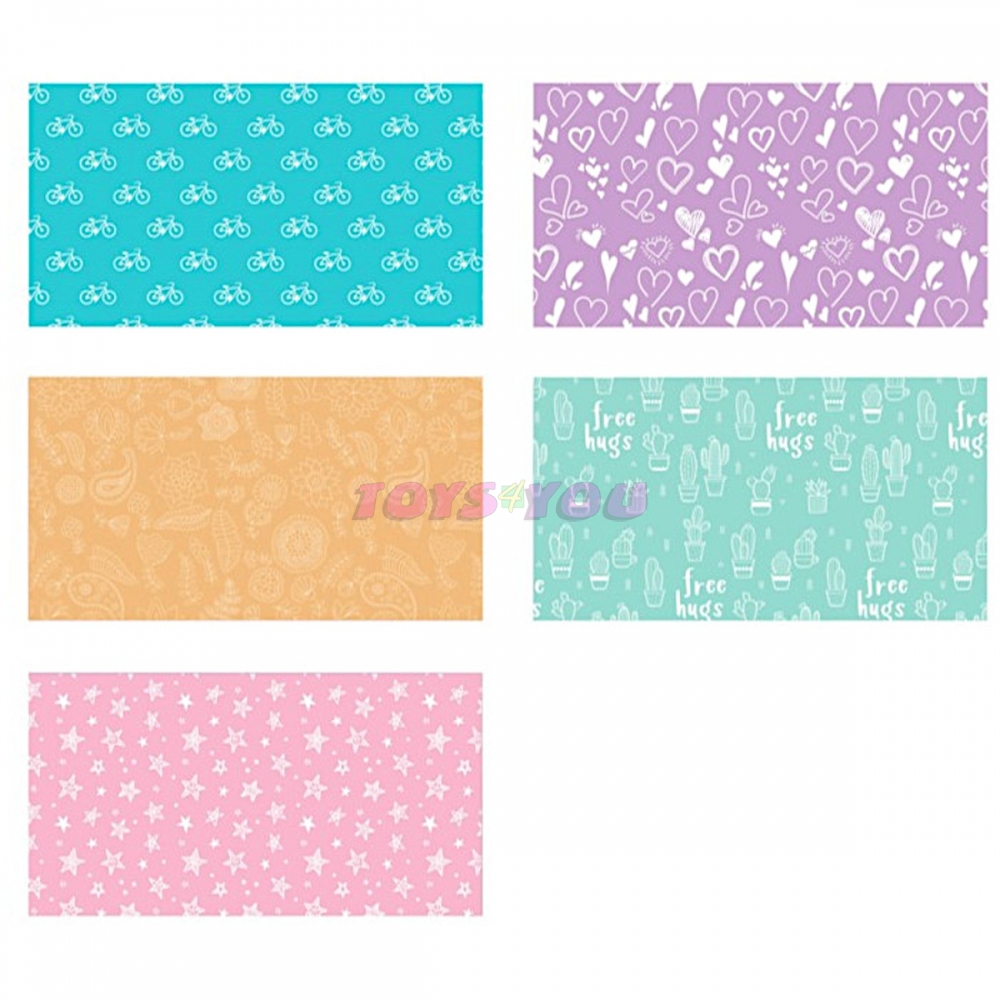 Vysoce kvalitní dárkový papír v roli s různými motivy pro všechny slavnostní příležitosti. Jednobarevné originální nadčasové motivy na pastelovém papíře. Motivy: kolo, srdce, kaktusy, hvězdy a květinové motivy.Šířka 70 cm, délka 2 m