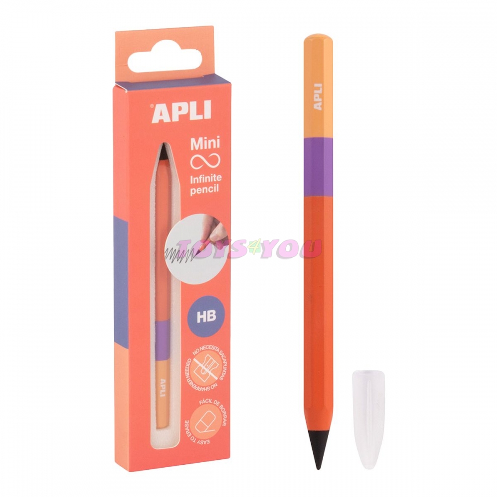 Jedinečná tužka, se kterou napíšete dlouhé kilometry textu bez jediného ořezání. Elegantní kovové tělo a odolná grafitová tuha vám zaručí až 16 km příjemného psaní. A navíc je lehce gumovatelná. Kompaktní mini velikost umožňuje mít tužku stále u sebe a tvořit originální kresby a poutavé příběhy. tvrdost: HB linka dlouhá až 16 km mix barev nepotřebuje ořezávat snadno gumovatelná obsah balení: 20 ks/ displej Záruční doba: 24 měsíců Výrobce/Dovozce do EU: APLI PAPER S.A.U