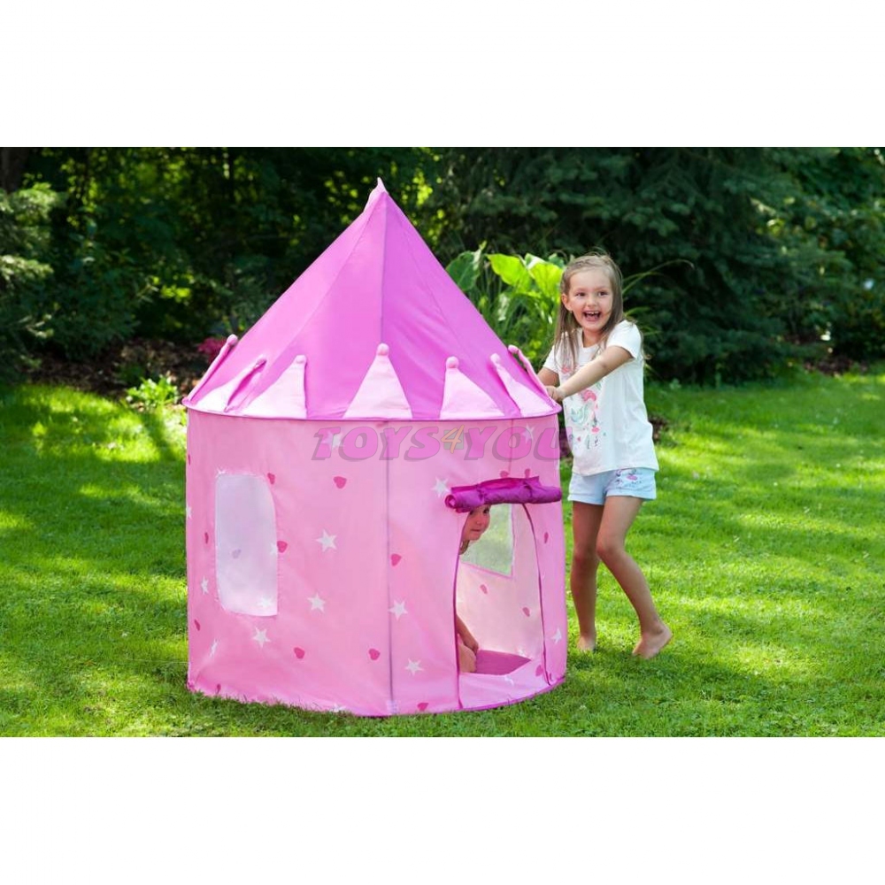 Skvělý dětský stan Hrad Baby Mix. Díky našemu stanu bude mít vaše malá princezna konečně svůj vysněný hrad, své vlastní království, úkryt, ve kterém si bude moct užít soukromí nebo naopak pozvat svou nejlepší kámarádku. Pro stan je typické rychlé a jednoduché rozložení i složení. Je vyroben z kvalitní a pevné látky. Vyrobeno z kvalitního polyesterového materiálu, lze rychle složit i rozložit. Rozměry: 105 cm základna, výška 125 cm, váha 0,85 kg. Věk: 3+