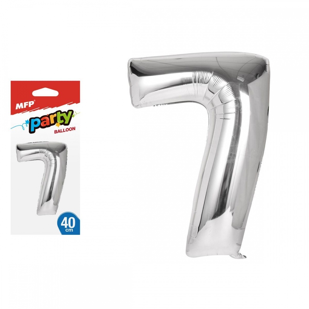 Nafukovací fóliový balónek ve tvaru čísla 7. Balónek je vyroben ze stříbrné fólie. Na horní straně balónku jsou očka na přivázání. Výška balónku: 40 cm. Věk: 8+
