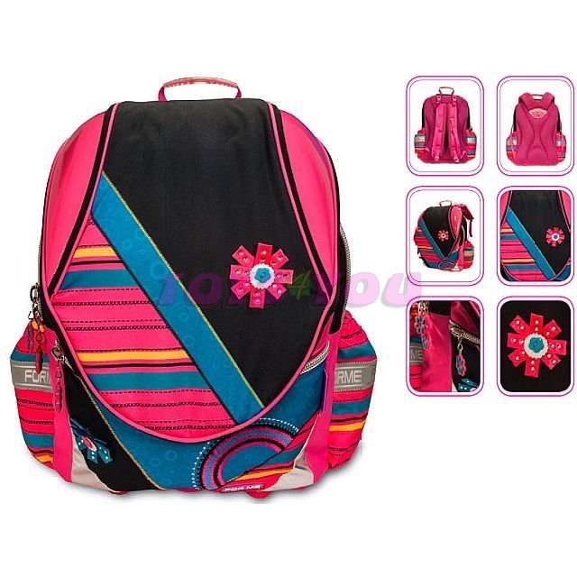 Školní batoh ergonomický splňující veškeré zdravotnické požadavky. Má anatomicky tvarované záda, uvnitř batohu je odlehčená hlíniková konstrukce,kterou lze jednoduše vyndat. Batoh má polstrované popruhy. Je velmi stabilní. Má pevné dno a ouško na zavěšení. Má reflexní prvky, pro lepší bezpečnost. Batoh je vhodný i pro prvňáčky.Vnitřní prostor je členěn na dvě části, zapínání na zip.Batoh má 2 boční kapsy + 1 menší přední kapsu .. Rozměry: 41x33x22cm.