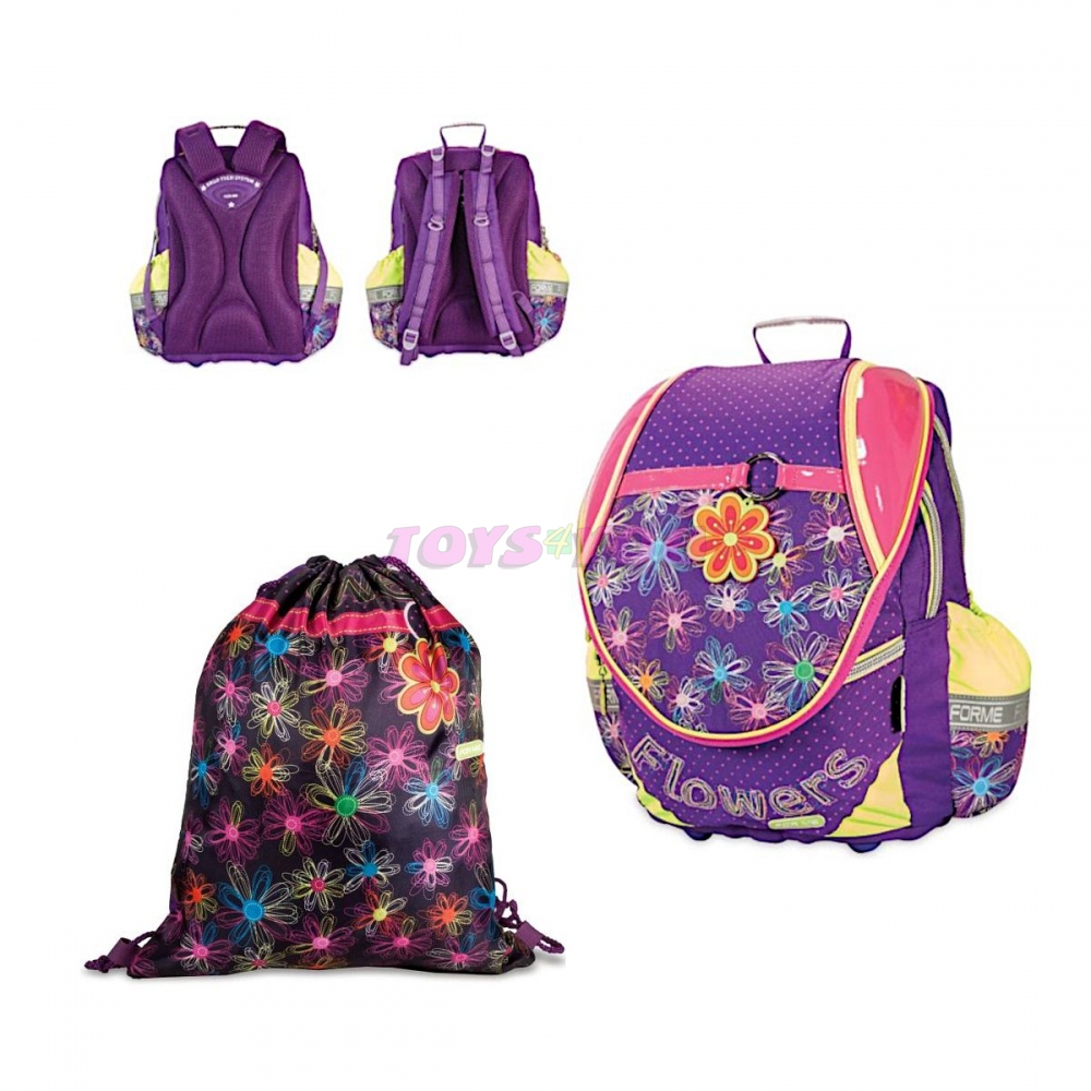 Školní batoh ergonomický splňující veškeré zdravotnické požadavky. Má anatomicky tvarované záda, uvnitř batohu je odlehčená hlíniková konstrukce,kterou lze jednoduše vyndat. Batoh má polstrované popruhy. Je velmi stabilní. Má pevné dno a ouško na zavěšení. Má reflexní prvky, pro lepší bezpečnost. Batoh je vhodný i pro prvňáčky.Vnitřní prostor je členěn na dvě části, zapínání na zip.Batoh má 2 boční kapsy + 1 menší přední kapsu Rozměry: 41x33x22cm. + ZDARMA Školní sáček vhodný pro školní přezůvky nebo cvičky . V horní části okraje sáčku je navlečena šňůrka na jeho stažení. Při stažení horní části se šňůrky na bocích uvolní natolik, že vytvoří popruhy a sáček se dá nosit jako batoh na zádech. Rozměr: 39x33cm