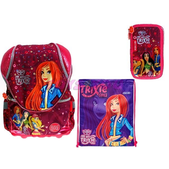 Školní batoh ergonomický splňující veškeré zdravotnické požadavky. Má anatomicky tvarované záda, uvnitř batohu je odlehčená hlíniková konstrukce,kterou lze jednoduše vyndat. Batoh má polstrované popruhy. Je velmi stabilní. Má pevné dno a ouško na zavěšení. Má reflexní prvky, pro lepší bezpečnost. Batoh je vhodný i pro prvňáčky.Vnitřní prostor je členěn na dvě části, zapínání na zip. .Batoh má 2 boční kapsy + 1 menší přední kapsu .Součástí batohu je pláštěnka. Rozměry: 35x26x21 cmŠkolní sáček vhodný pro školní přezůvky nebo cvičky s kapsou na zip na drobné předměty na přední straně . V horní části okraje sáčku je navlečena šňůrka na jeho stažení. Při stažení horní části se šňůrky na bocích uvolní natolik, že vytvoří popruhy a sáček se dá nosit jako batoh na zádech. Je vybaven reflexními prvky. Rozměr: 37x30x15 cm.Dvoupatrový školní penál bez výbavy, polstrovaný pro ochranu psacích potřeb, uzavíratelný pomocí kvalitních zipů s velkými taháčky pro snadnou manipulaci. Rozměr: 21,3 x 12,5 x 4,2 cm.
