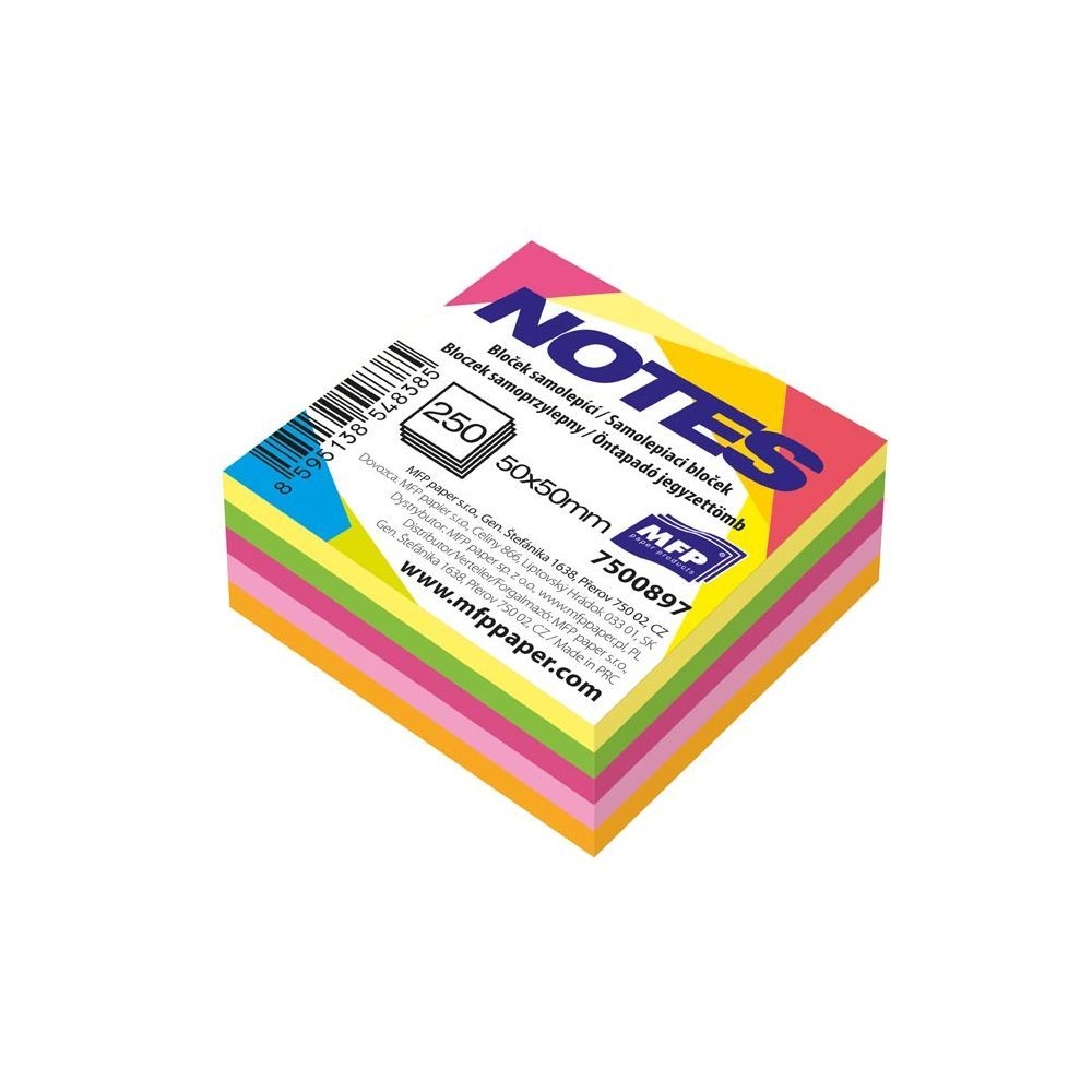 Bloček samolepící - neonové barvy - Potřebujete si zaznamenat důležitou poznámku nebo jen nechat někomu vzkaz? Bločky jsou i samolepící, takže je můžete přilepit ke stolu a nikam se nepoztrácí. Rozměr: 50mm x 50mm x 25mm (Š x V x H)
