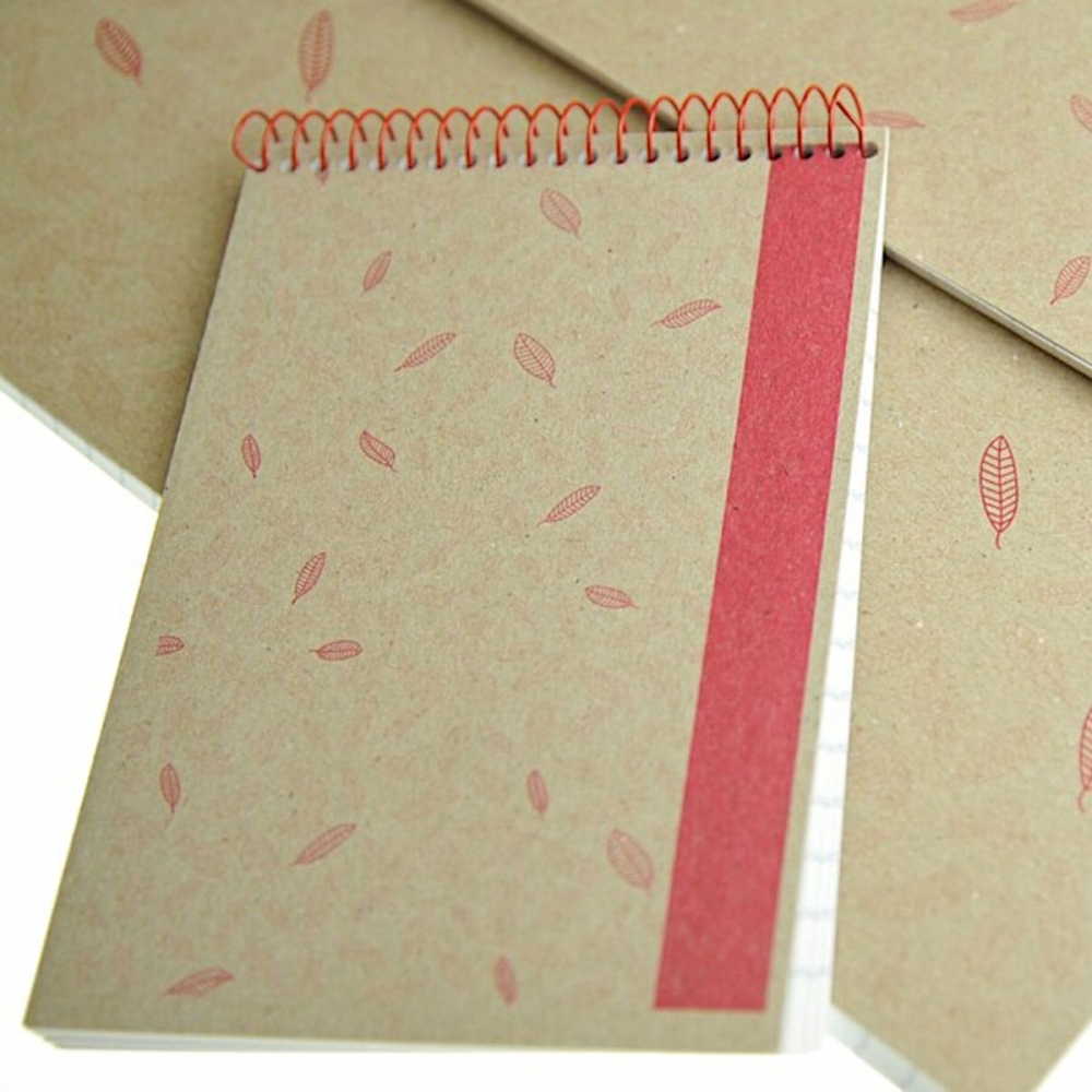 Malý linkovaný blok šetrný k přírodě se spirálou na kratší straně.