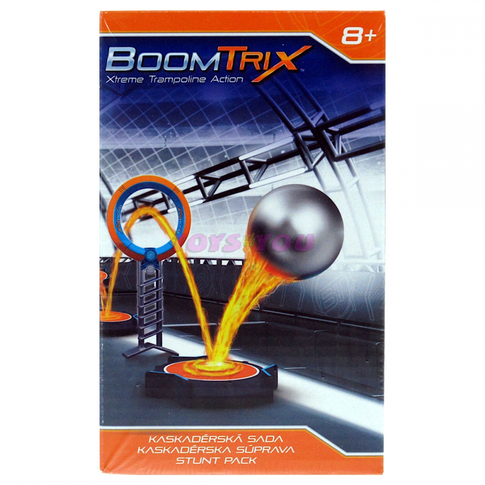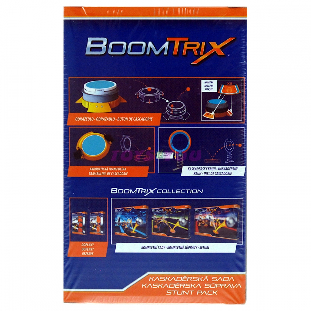 Kaskadérská sada BoomTrix! Postav si doma tu nejlepší kuličkovou dráhu podle své fantazie! Užij si doma spoustu zábavy, naplánuj úžasné trýčky, dokaž nemožné a překonej gravitaci! Ale pozor, dráhu musíš pořádně propočítat! Čím větší výzva, tím větší radost! Tato sada obsahuje: odrážedlo, akrobatickou trampolínu a kaskadérský kruh. Věk: 8+
