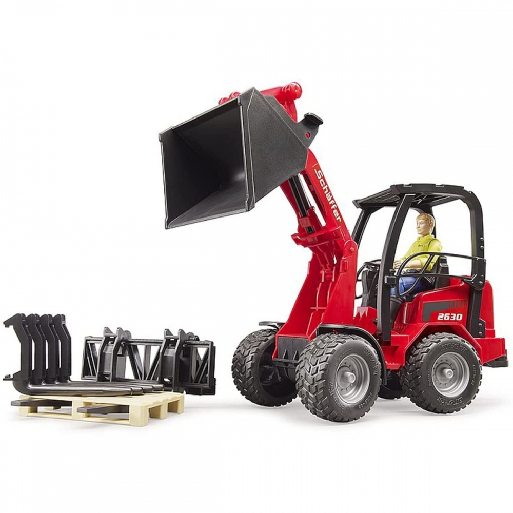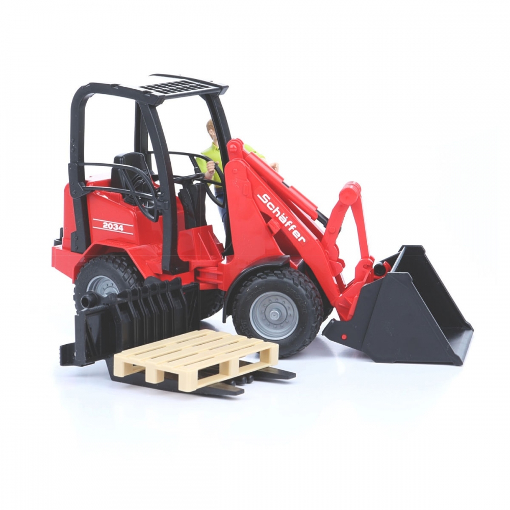 Nakladač Schäffer Hoflader 2034 s figurkou a příslušenstvím, precizně zpracovaný robustní model nakladače Schäffer 2034 s čelním plně funkčním nakládacím ramenem. edice BWORLD. Balení obsahuje mimo jiné i paletu a nakládací vidle. Nakladač má nastavitelnou a odnímatelnou čelní radlici, odnímatelný zadní závěs. Vyrobeno v měřítku 1:16. Rozměry: 29,5 x 9,6 x 15,7 cm. Věk: 4+