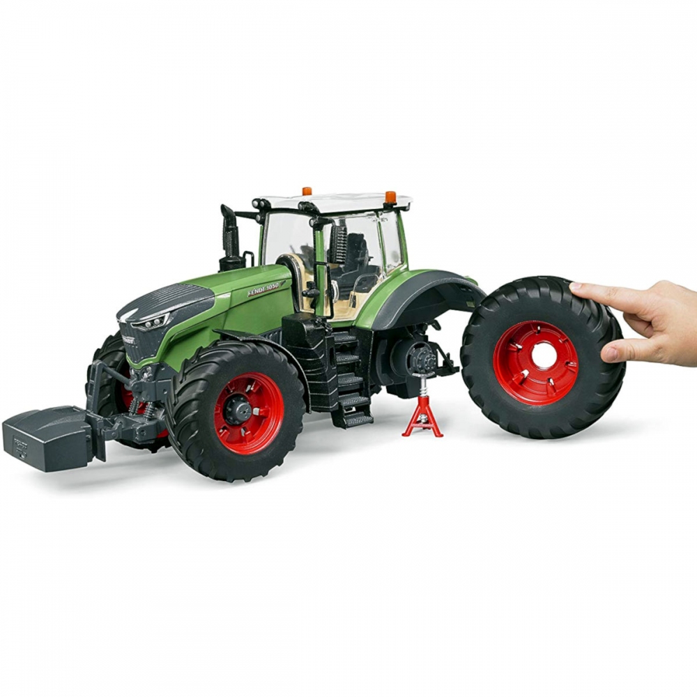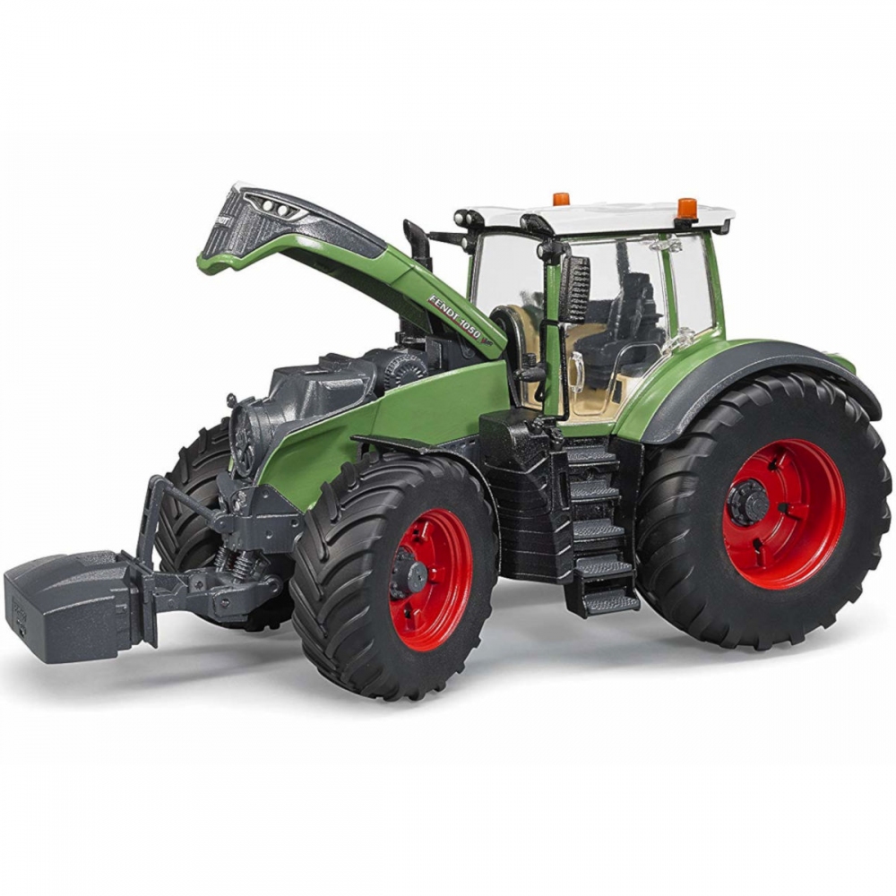 Zelený Traktor Fendt 1050 Vario je jedním z detailně zpracovaných modelů. Má možnost zdvojení kol, řiditelnou přední off-road nápravu, otevíratelnou kapotu motoru a dveře, nastavitelnou výškou tažného zařízení, možnost připojení nakladačů, valníků. Měřítko 1:16 Rozměry: 35 x 20 x 22 cm. Věk: 4+