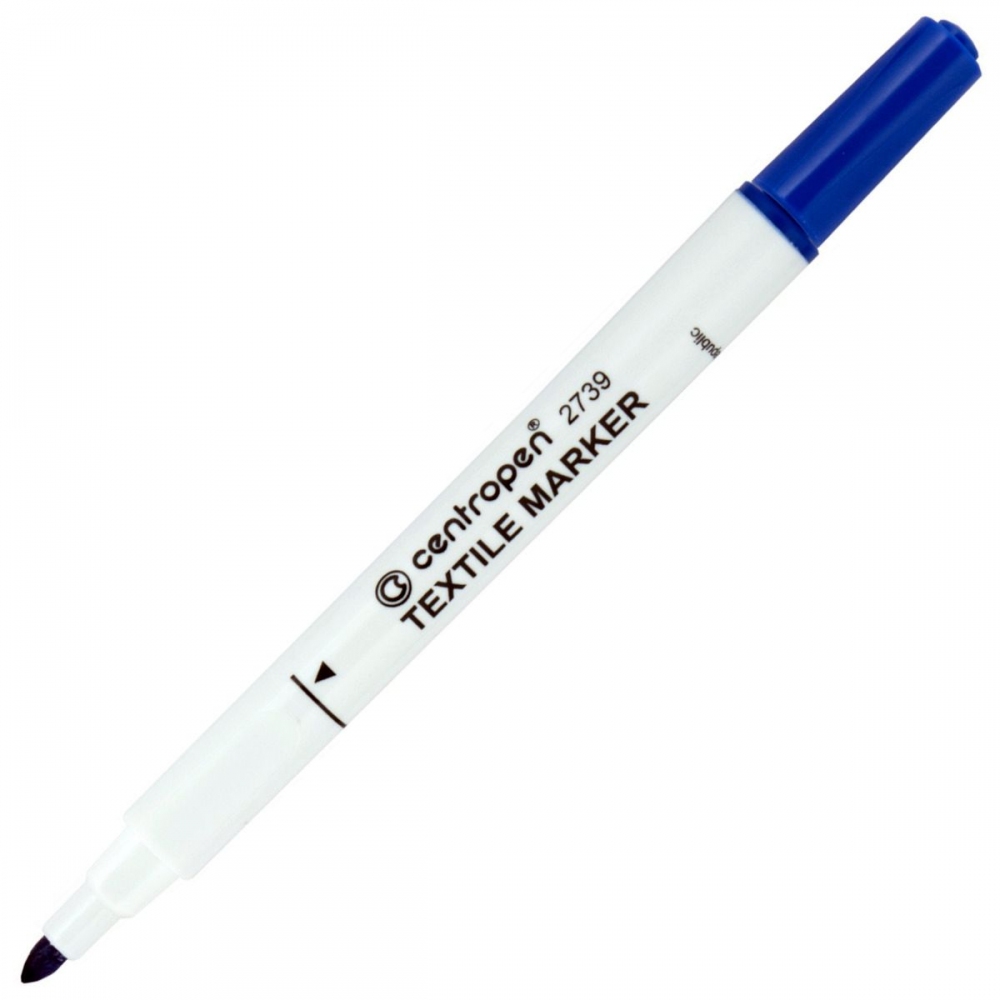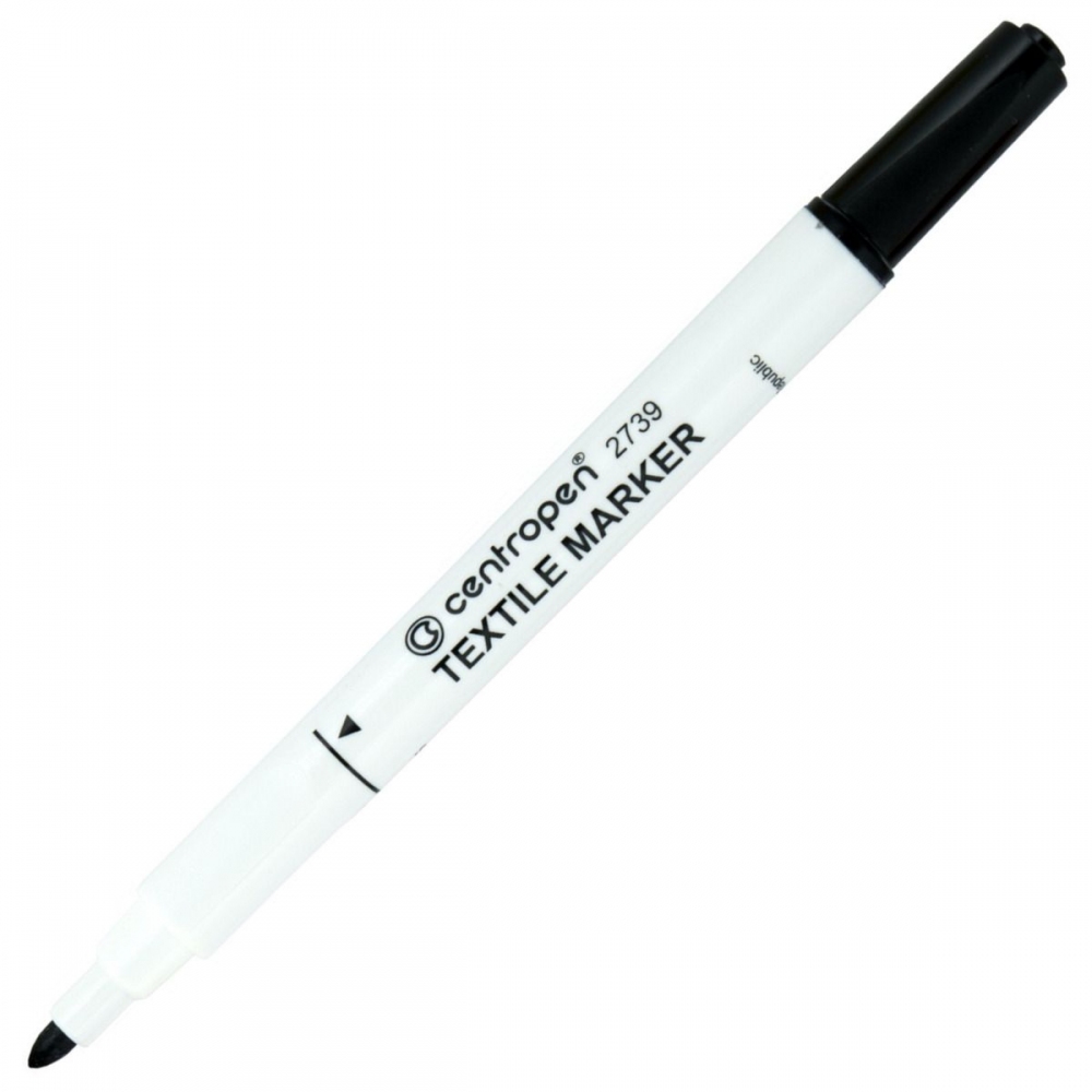 Centropen - ART. 2739 TEXTILE 2739 Značkovač s trojúhelníkovým držením a nevypratelným světlostálým inkoustem na vodní bázi, píše na téměř všechny druhy textilu, stopa písma je odolná praní do 60 °C, vhodný pro malování na trička. Válcový hrot o průměru 3,5 mm. Skladujte ve vodorovné poloze.