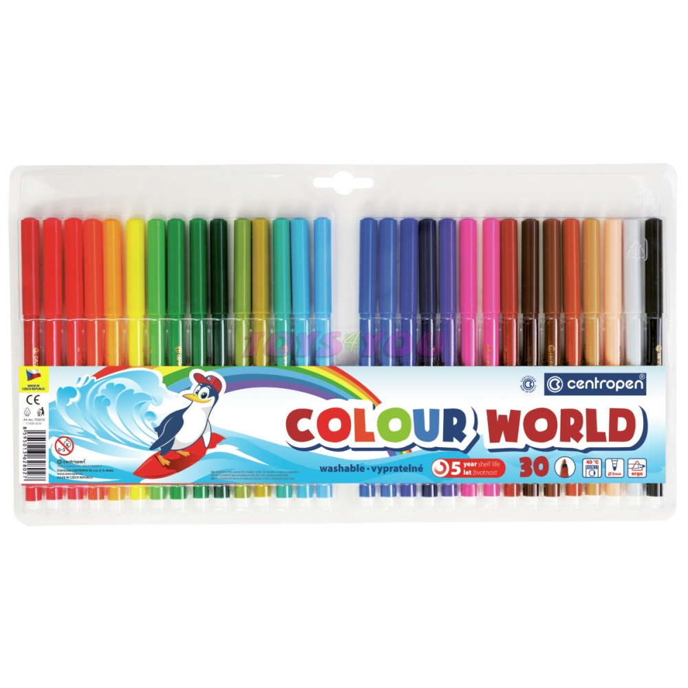 Popisovače s ventilačním bezpečnostním chránítkem a trojúhelníkovou úchopovou částí, odpovídající nejnovějším trendům v ergonomii psaní a kreslení. Jsou vyrobeny z polypropylenu a odolávají vyschnutí minimálně 3 roky. Válcové hroty o průměru 2 mm, odolné proti zatlačení, 30 barev vypratelných inkoustů s vysokou pestrostí.