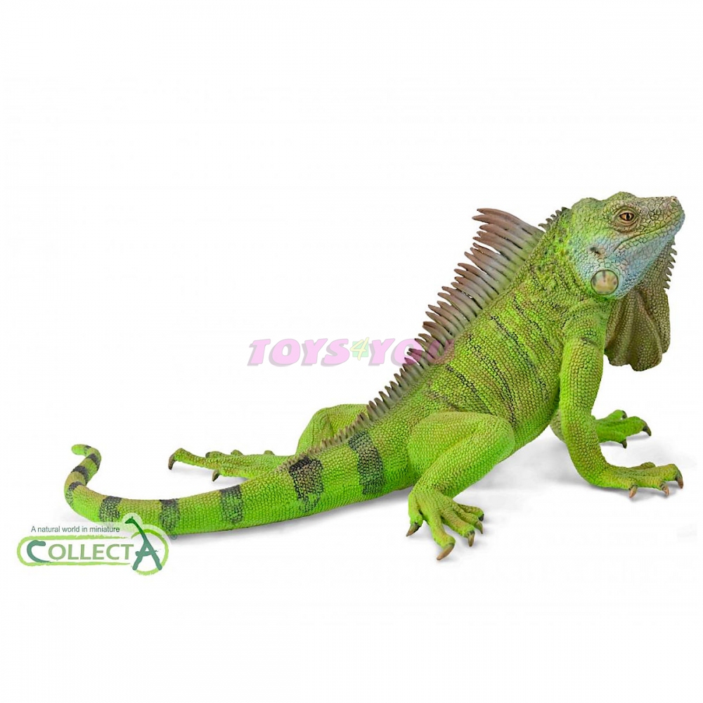Leguán zelený - figurka vyrobená s důrazem na detail. Detaily se týkají nejen textury hračky, ale také grafického vzoru, který se objevuje na jejím povrchu. Z tvrzené pryže, ručně malovaný model zvířátka. Rozměr: V 6,2 cm x D 13,8 cm. Věk: 3+
