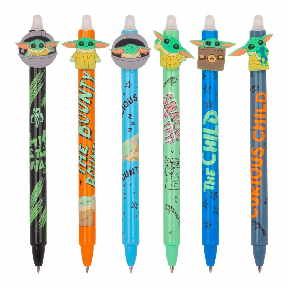 Konec chybám a škrtání v sešitech. Prostě je vymaž a přepiš. Pevná pryž na konci pera a jedinečné složení inkoustu zaručuje jednoduché a opakované gumování. Stiskací mechanika s integrovanou gumou. K dispozici náhradní náplň. Praktická gumovatelná pera s šesti různými motivy mimozemského Madalorian-Baby Yoda. Kvalitní inkoust lze v případě potřeby jednoduše vygumovat a přepsat. barva náplně: modrá stiskací mechanika s gumou dostupná náhradní náplň R37534PTR 6 motivů balení: 36 ks displej