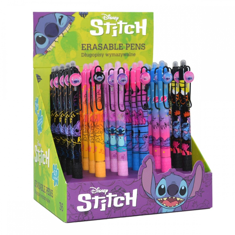 Konec chybám a škrtání v sešitech. Prostě je vymaž a přepiš. Pevná pryž na konci pera a jedinečné složení inkoustu zaručuje jednoduché a opakované gumování. Stiskací mechanika v klipu. K dispozici náhradní náplň. Veselá gumovatelná pera s šesti různými motivy mimozemského Stitche. Úchopová zóna ve tvaru plástve s protiskluzovou úpravou zajistí pohodlné psaní. Klip pera s obrázkem Stitche, barva náplně modrá. šířka stopy: 0,7 mm barva náplně: modrá stiskací mechanika v klipu pera dostupná náhradní náplň: 0,5 mm R37534PTR; 0,7 mm R3468900006 6 motivů