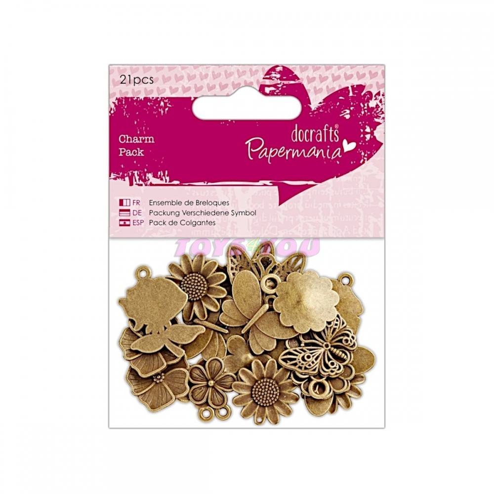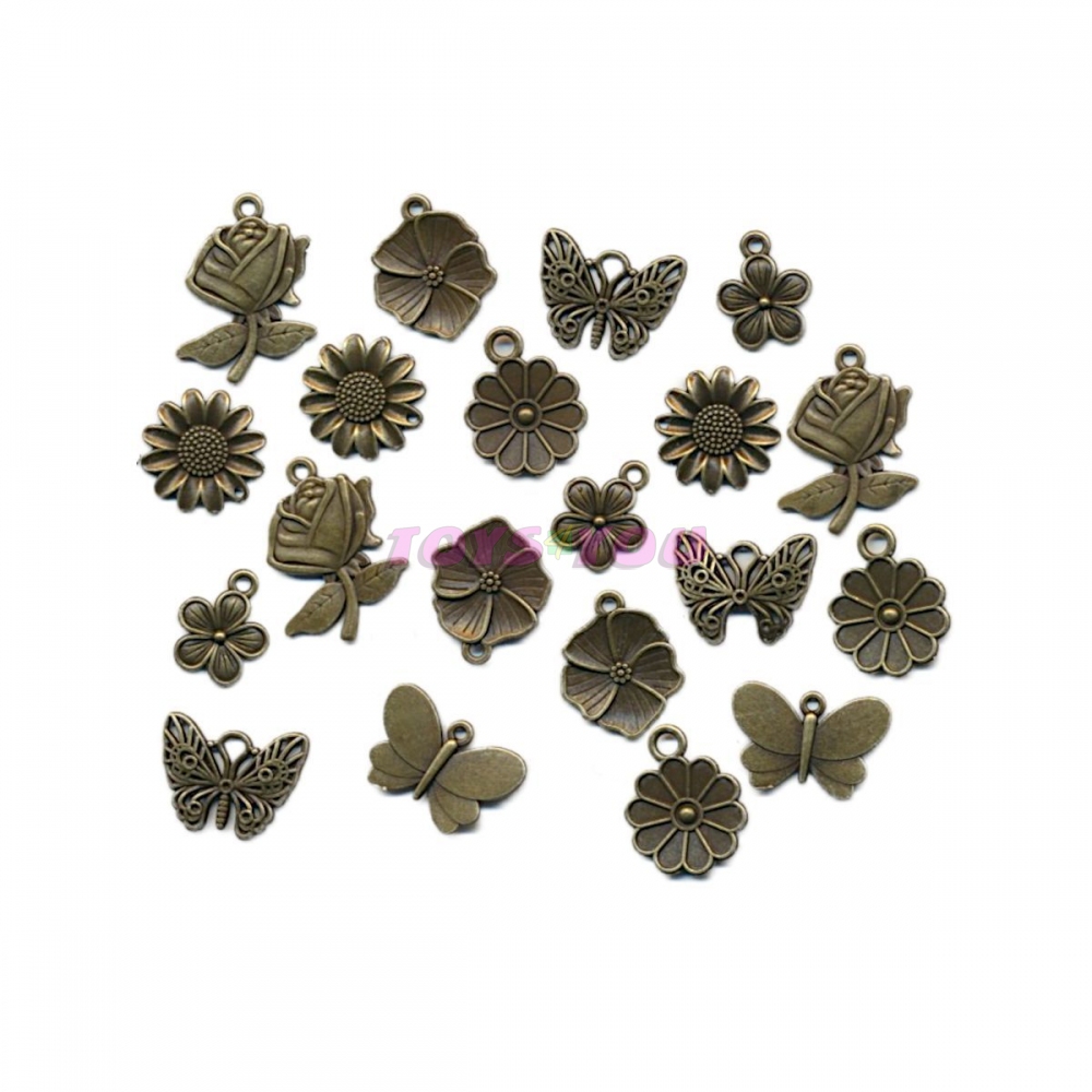 Kovový přívěsek můžete použít k dekoračním účelům. Zajímavě vynikne uvázaný na stužce, kterou se ováže např. svícen, papírové přání nebo dárková krabička. Můžete si jím ozdobit např. klíče. Je vhodný k tvorbě ketlovaných záložek do knih nebo ozdobných přívěsků na kabelky a karabinky. Může se dát i jako ozdoba na oděvy, tašky, peněženky. Balení obsahuje 21 ks - kytičky a motýlci.