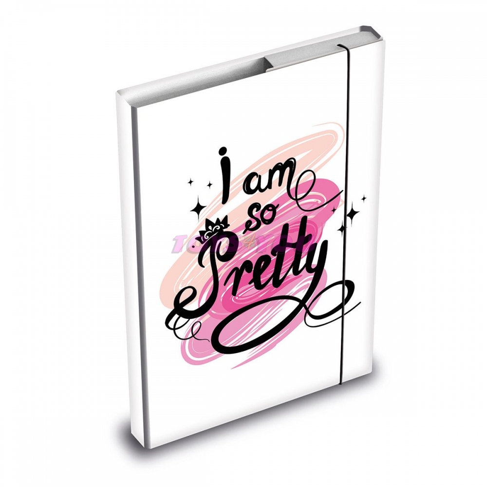 Školní desky na sešity ve velikosti A5 s nápisem Pretty - nezbytná součást každého školáka - díky školním deskám budou všechny sešity a učebnice pohromadě a neponičené.Tyto desky na sešity jsou opatřeny gumou, která zabraňuje samovolnému otevření. Heft box je vyroben z kvalitního lepenkového kartonu, potaženého laminem. Z tohoto důvodu se dá velice lehce udržovat. Materiál: lepenkový karton s laminem. Rozměr: 167mm x 230mm x 40mm (Š x V x H)