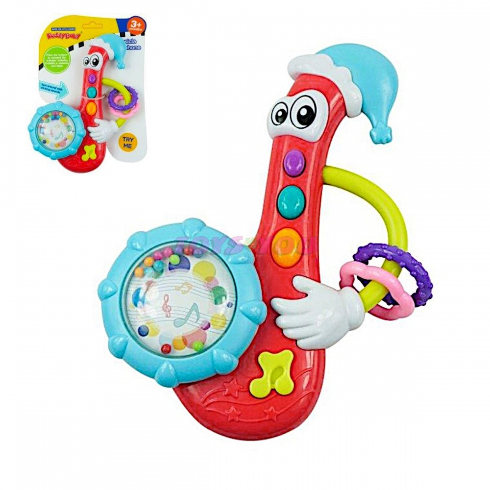Barevné dětské chrastítko Baby Mix je díky svým veselým barvám a tvaru u dětí velmi oblíbené a stimuluje rozvoj jejich koordinace a smyslů. Je vyrobeno z vysoce kvalitních, bezpečných a odolných materiálů, které lze snadno mýt. Tvar usnadňuje držení a napomáhá rozvíjet jeho motorické schopnosti. Na chrastítku jsou knoflíky pro zapínaní a vypínání melodií. Určeno pro děti od prvních dnů života. Barevné provedení se liší dle aktuální nabídky. Rozměry: 18 x 12 x 5 cm. Věk: 0+
