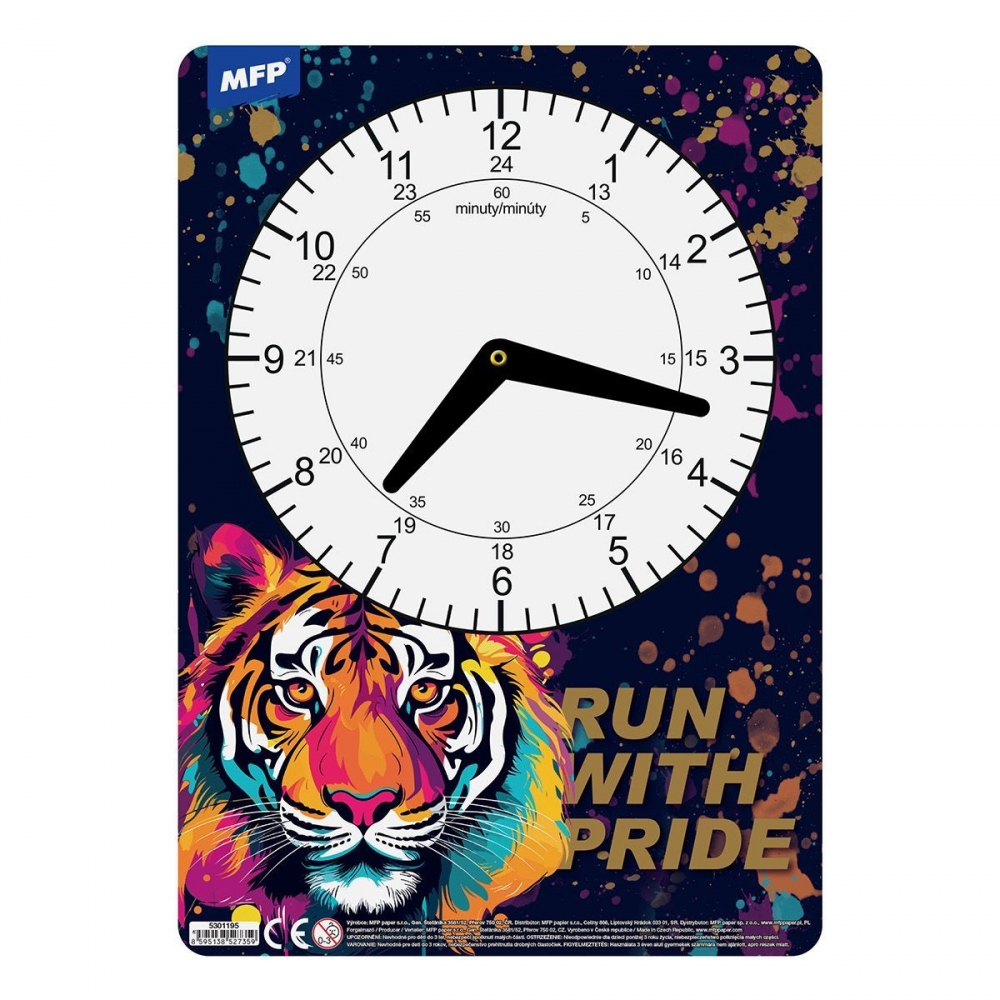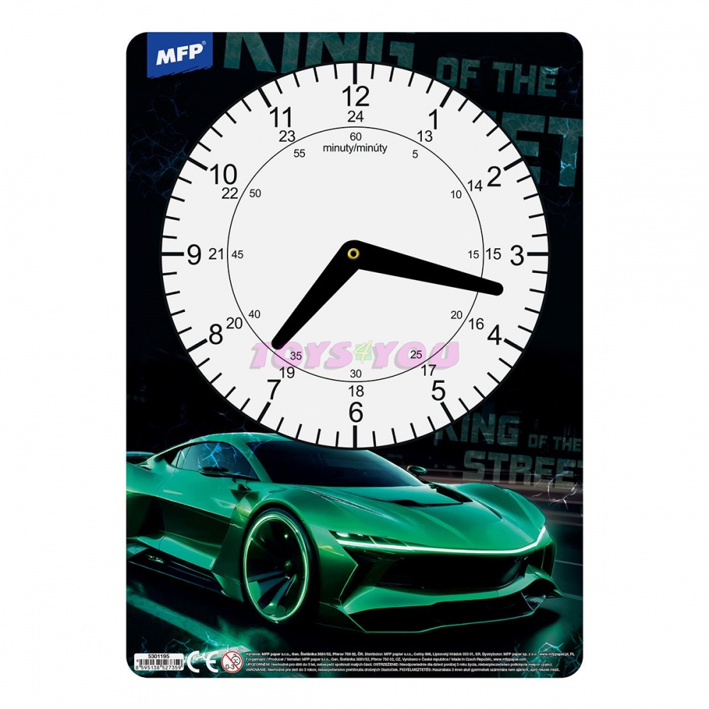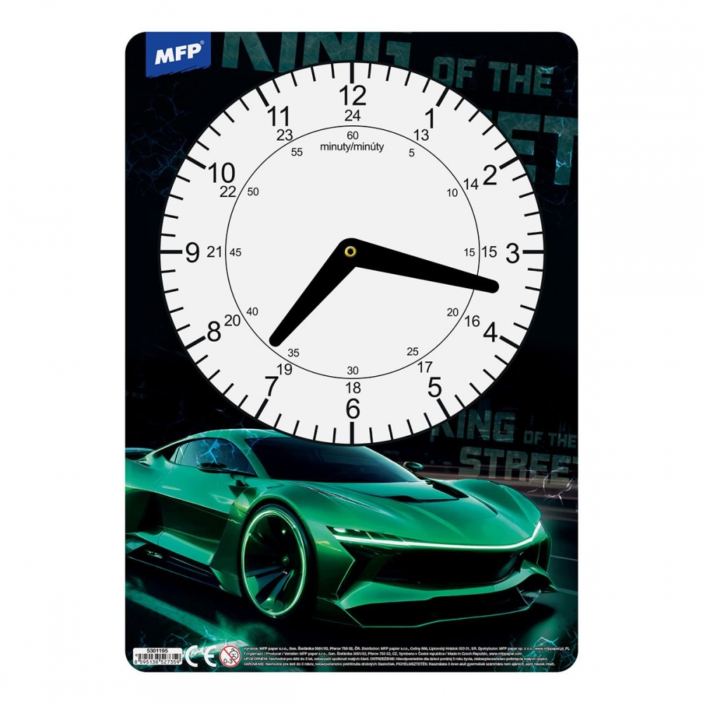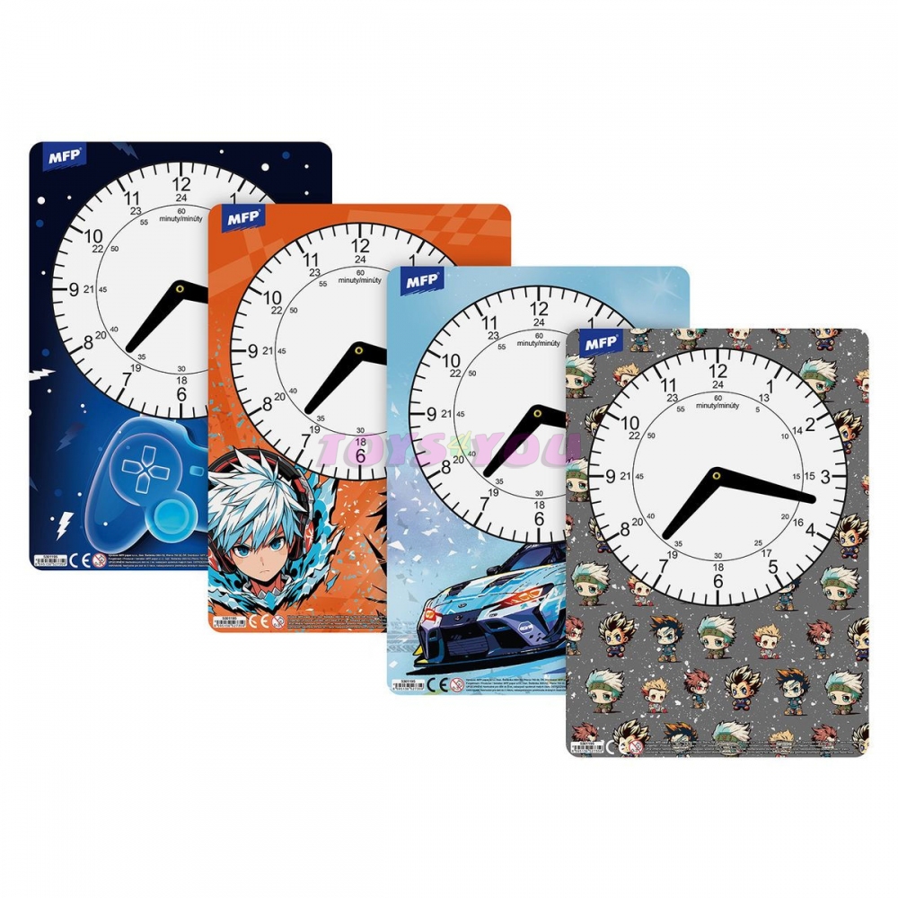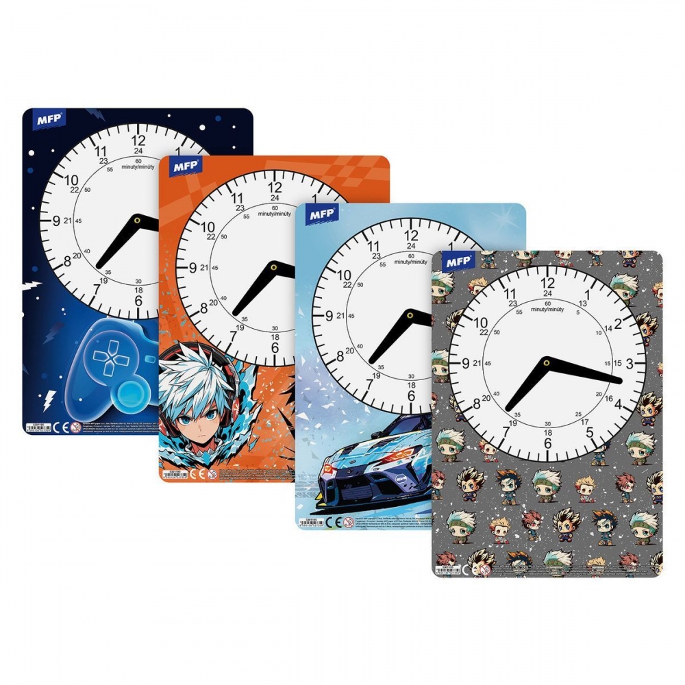 Dětské papírové hodiny v mixu chlapeckých motivů. Didaktická pomůcka, dobře využitelná k výuce času u dětí předškolního věku nebo u prvňáčků. Tyto cvičné hodiny nesmí chybět Vašemu dítěti při nástupu do první třídy základní školy. Motiv: herní, animey style, závodní auto, anime maskoti Upozornění: Nevhodné pro děti do 3 let. Nebezpečí vdechnutí a spolknutí malých částic. Dodáváme v mixu po 4 ks dle skladové zásoby. Uvedená cena je za 1 ks.