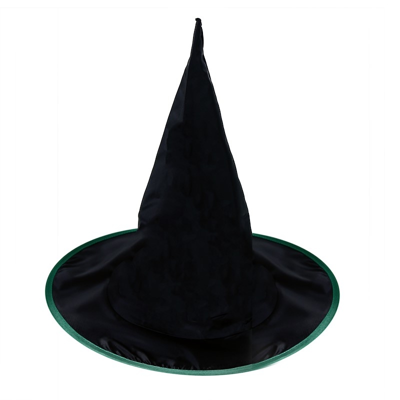 Čarodějnický klobouk nesmí chybět ve tvé karnevalové sbírce! Klobouk je vyroben z černé šusťákoviny a je dekorován zeleným lemem. Rozměr: 330×320×330 mm. Věk: 3+
