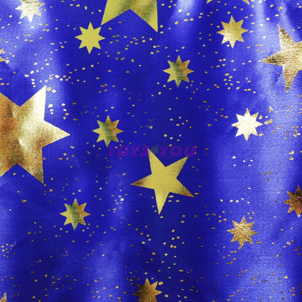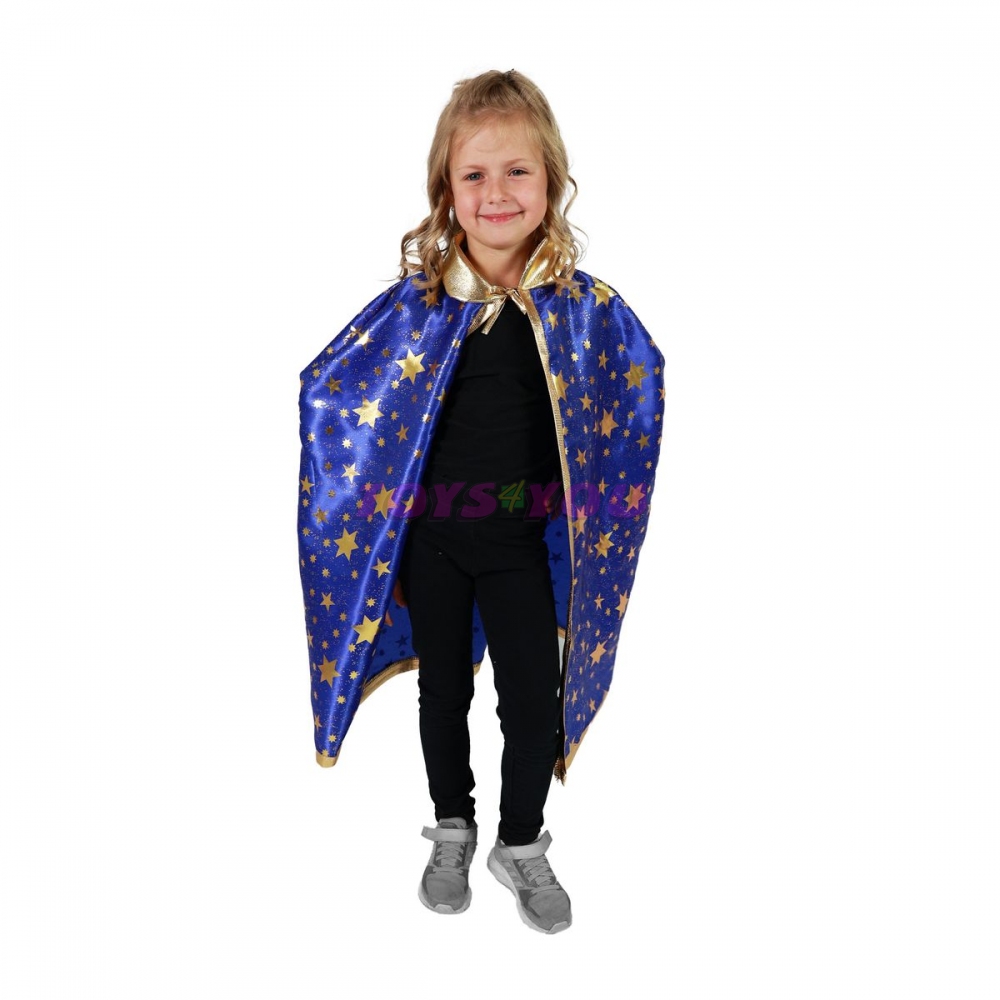 Dětský kouzelnický modrý plášť s hvězdami čarodějnice Kouzelný čarodějnický plášť! Tento magický kousek je určen pro všechny holky a kluky ve věkovém rozmezí 3-7 let. Plášť na zavazování je dekorován zlatými hvězdičkami a lemováním. Délka pláště cca 75 cm. Ideální i k oslavě Halloweenu. Koště není součástí.