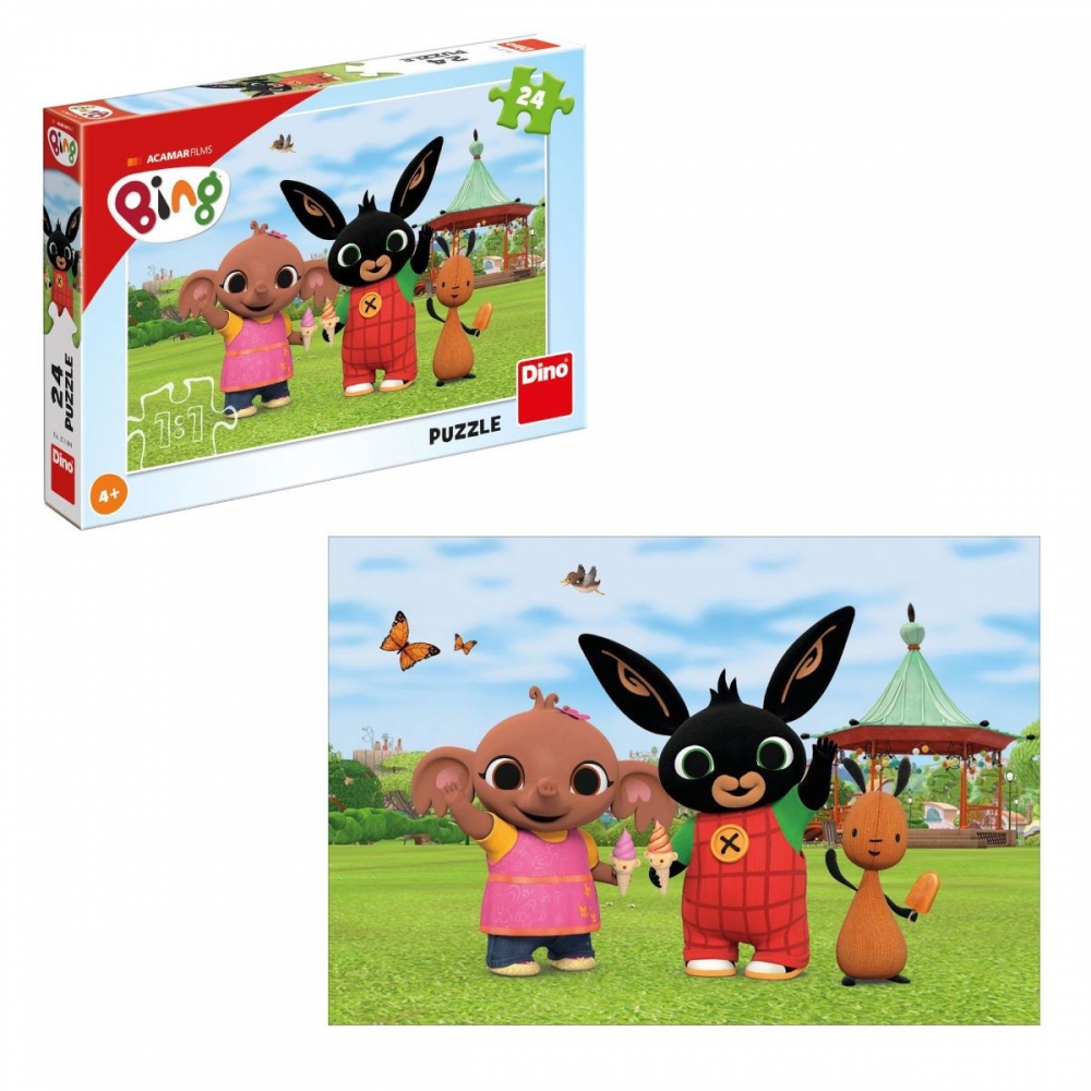 Můžou králíčci zmrzlinu? Když jsou pohádkoví, tak určitě. Důkazem toho je i Bing z oblíbeného kresleného seriálu. Na puzzle s 24 maxi dílky si to ověří i vaše děti. Kromě Binga si tam na zmrzce pochutná i slonice Sula a králíčkův kamarád Flop. Společně si budou hrát s obrázkovým 24dílným puzzle. Nad skládačkou si malé slečny navíc procvičí prostorovou představivost, zapojí fantazii a potrénují motoriku.Skládačka byla vyrobena v ČR. Všechny dílky jsou tvořeny z pevné a zdravotně nezávadné lepenky, kterou mohou děti bez jakéhokoli rizika strčit i do pusy. Rozměr obrázku: 264 x 181 mm. Věk: 4+