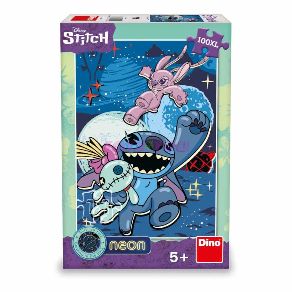 Dětské neonové puzzle obsahující 100 větších dílků. Svítí ve tmě. Díky větší velikosti částeček se obrázek dobře sestavuje už předškolním dětem od 5 let. Skládačka se 100 dílky slibuje kreativní zábavu i příležitost rozvíjet dětskou fantazii, trpělivost a šikovnost. Rozměr 47 x 33 cm. Puzzle bylo vyrobeno v ČR. Balení prošlo elektronickým testem, který zaručuje, že jsou v něm všechny dílky do jednoho. Veškeré části jsou ze zdravotně nezávadného kartonu. Specifikace produktu Licence:Stitch Věk od:5+ let Copyright:Disney Počet dílků:100 Rozměr herního plánu:330 x 470 Orientace:Vertikální Váha:0.434 kg Rozměry balení:295 x 200 x 65 mm. Věk: 5+