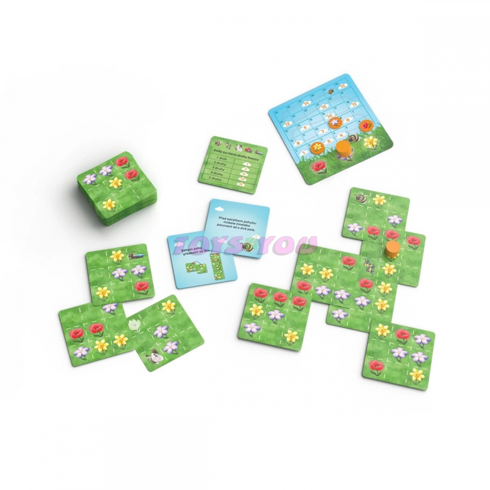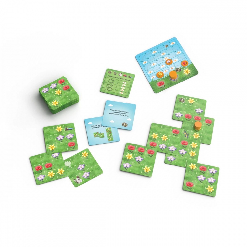 Rozkvetlou loukou se nese milé hluboké bzučení. To huňatí čmeláci přelétají z květu na květ a sbírají z různobarevných kytiček pyl. Dokážete se svým čmelákem opylovat co nejvíc stejnobarevných květin najednou? A podaří se vám najít všechny obyvatele louky skryté v trávě? Čmeláci jsou rodinná hra, ve které si každý hráč chytře sestavuje z kartiček svoji louku tak, aby vytvořil co nejdelší řady květin stejné barvy a získal nejvíc bodů. Rozvíjí představivost a schopnost plánování. Specifikace produktu Délka hry:20 min Hráčů od–do:1–4 Věk od:6+ let Jazyk:CS, pravidla SK Licence:Tomáš Holek Rozměry balení:202 x 202 x 55 mm. Věk: + 6 let