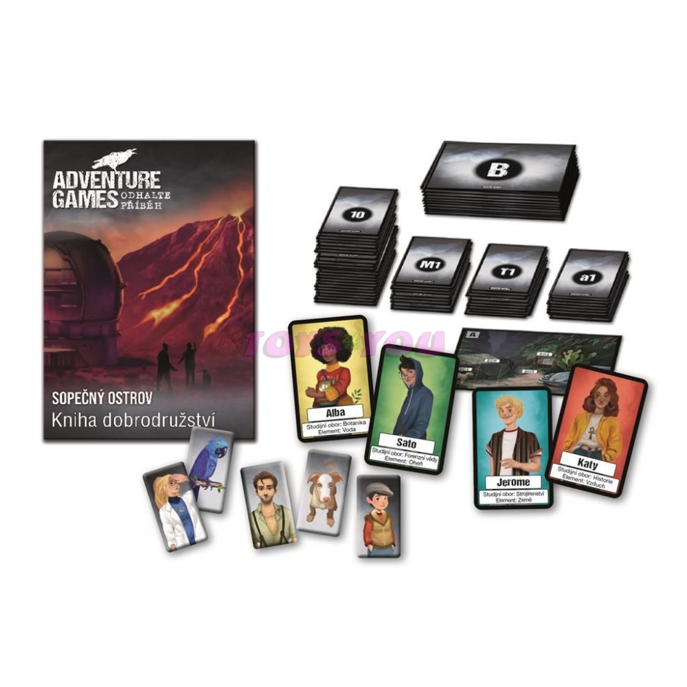 Vydejte se s kamarády na sopečný ostrov! Kdy? Třeba hned. Buďte ale připraveni, že se na vašem dobrodružném výletě může leccos nebo taky všechno) zvrtnout. Zatímco vy v rolích studentů Alby, Katy, Jeromeho a Sata budete putovat sopečnou krajinou, budou ostrov brázdit také neznámí pašeráci. Jak konfrontace s nimi dopadne? Jaká tajemství ostrov ještě skrývá? Odhalení a pokračování příběhu už je jen ve vašich rukou. V napínavé adventure hře budete řešit nejrůznější stopy a hádanky, provázet vás budou fiktivní postavy a také vědomí, že všechno závisí jen na vás a vašem týmu. Společně zjistíte, jak umíte spolupracovat, jak dobře vám slouží paměť a jestli umíte naplno využít své kombinační schopnosti. V této kooperativní hře si sami zvolíte, jakou cestou se vydáte a jak se váš příběh odehraje. Díky pestrým možnostem scénáře lze tuto hru hrát opakovaně. Herní materiál se nijak neničí a zůstane vám i do dalších her. Hra pro 2-4 hráče. Věk: 12+