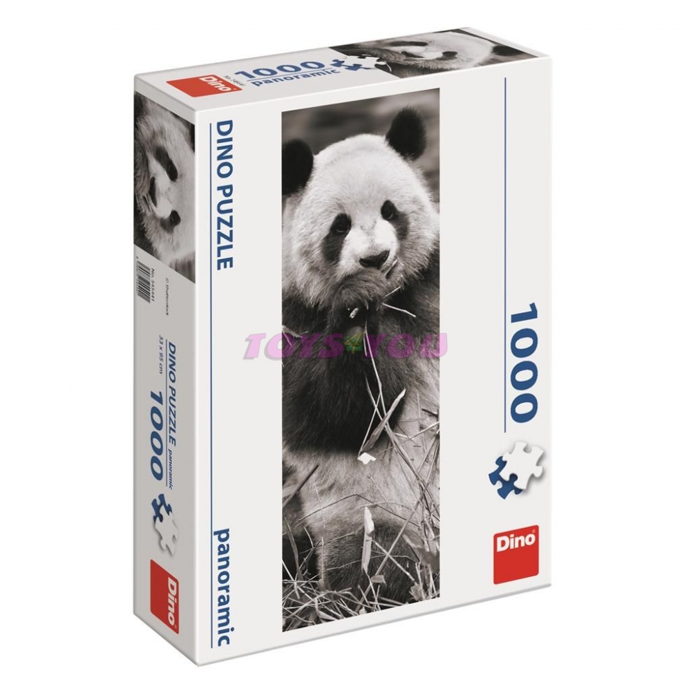 Vzhledem ke své barvě a velikosti pandy nemají moc šancí ukrýt se jen tak v trávě. Ovšem na černobílém puzzle pořádně otestují vaši bystrost a pátrací schopnosti.Sestavte si doma 1000dílné panoramatické puzzle a hotový obraz si nezapomeňte podlepit. Krásná fotografie vám poslouží jako originální dekorace domova nebo kanceláře. Rozměr: 950 x 330 mm. Věk: 15+