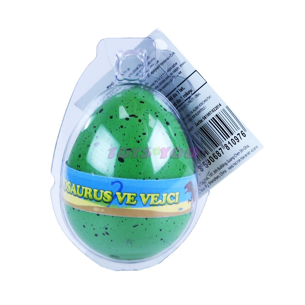 Vložte vejce do nádoby. Nádobu naplňte vodou tak, aby bylo vejce celé pod vodou. Po 12-24 hodinách začne vejce praskat. Pokud klesne hladina vody, vodu dolijte. Po 48 hodinách je dinosaurus vylíhnutý.