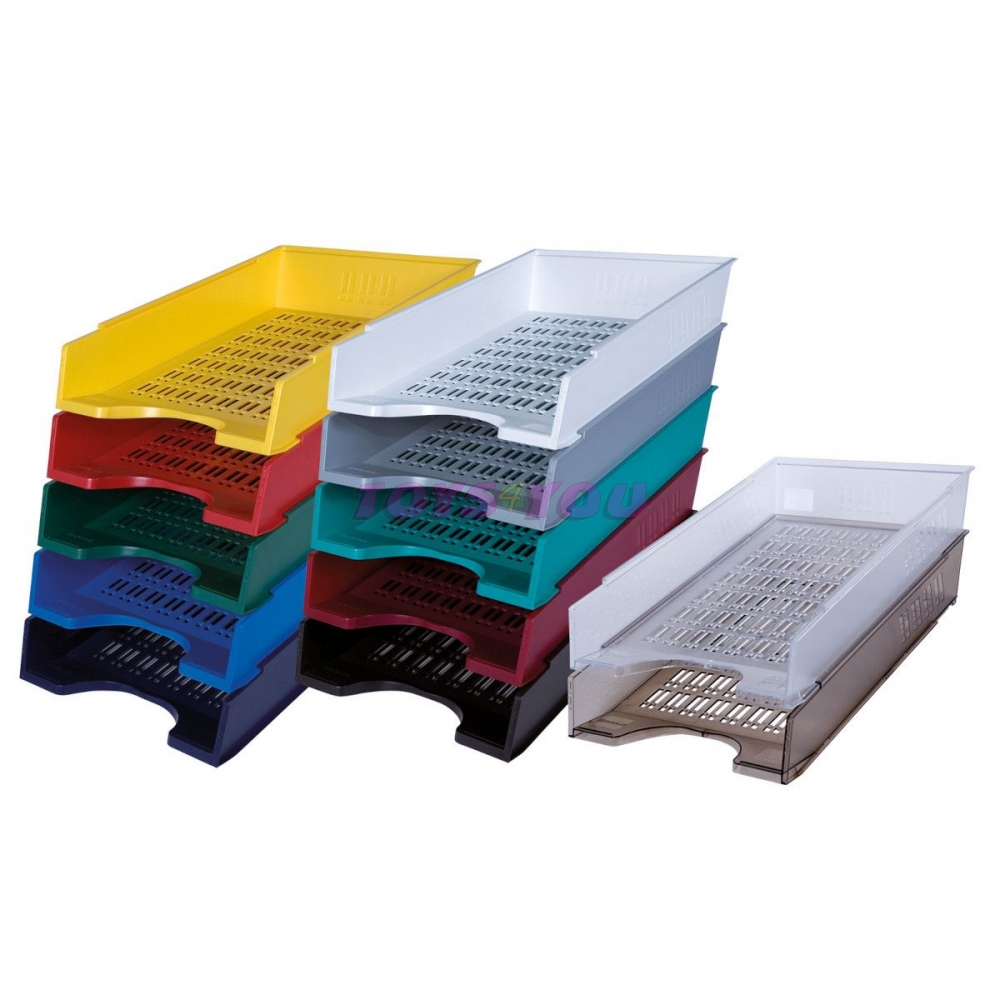 Kancelářský děrovaný odkladač na dokumenty formátu A4. Masivní a odolné provedení. Prostor pro štítky (nejsou součástí balení). Odkladače lze prakticky kombinovat a kaskádově vrstvit. na dokumenty formátu A4 materiál: odolný polystyren barva: černá vnější rozměry: 256 x 70 x 370 mm, vnitřní rozměry: 238 x 49 x 330 mm max. nosnost 10 kg omyvatelné balení: 1 ks Záruční doba: 24 měsíců. Cena za jeden kus.