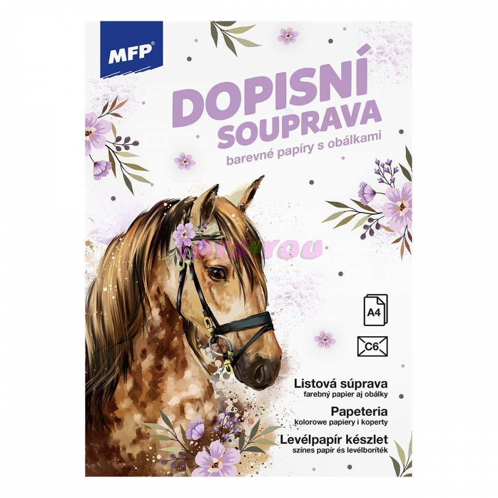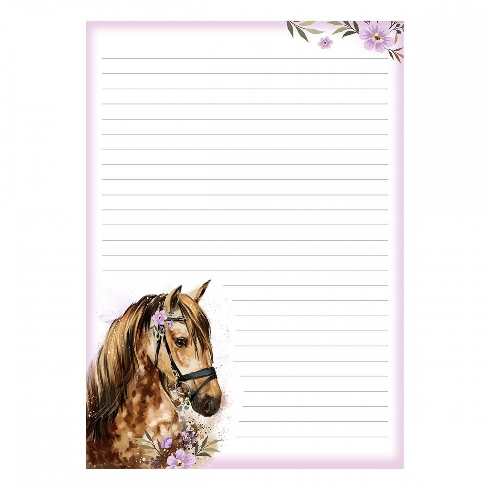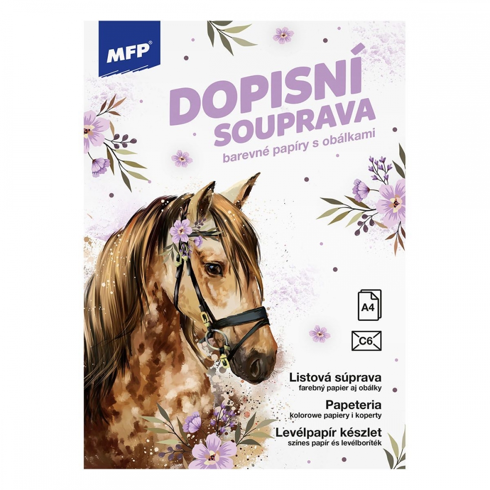 Dopisní souprava s obrázkem koně. Píšete rádi dopisy svým známým? Pořiďte si u nás krásné dopisní papíry s různými motivy a nezapomeňte ani na psací potřeby. BALENÍ OBSAHUJE: - 10 potištěných dopisních papírů formátu A4 - 5 barevných poštovních obálek FORMÁT: A4 PROVEDENÍ: linkovaný Dodáváme v nádherné papírové krabičce. Baleno v plastovém průhledném obalu se závěsem. Uvedená cena je za 1 balení. Rozměr: 160mm x 220mm x 10mm (Š x V x H) Vyrobeno v EU.