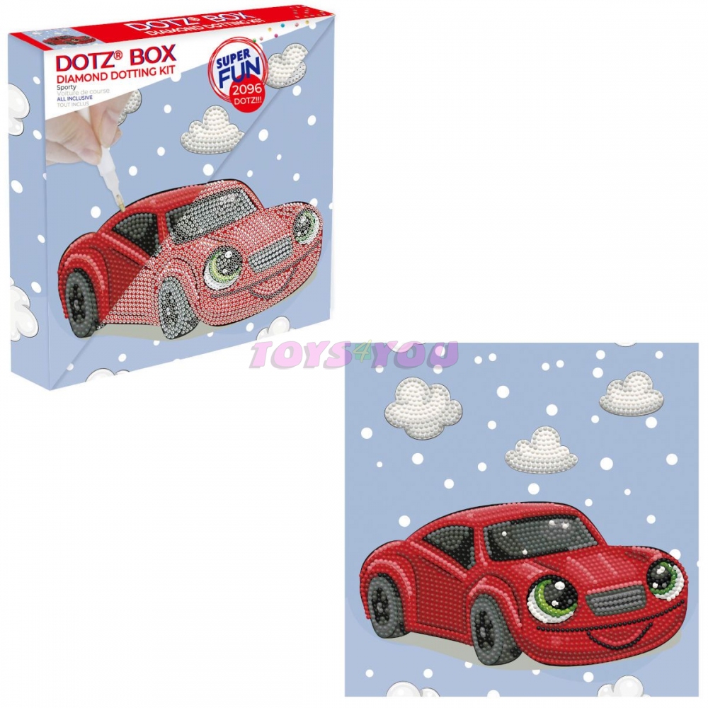 DOTZIES je jednodušší varianta Diamantového malování vhodná pro děti. Pro zjednodušení nekamínkují celý obrázek, ale jen jeho centrální část. Sada DOTZ BOX obsahuje vše, co potřebujete k dokončení díla, bez nutnosti rámování. Po vyrobení stačí jen zavěsit na vybrané místo. 2.096 diamantů, 15 barev Super snadná a zábavná činnost s úžasnými zářivými výsledky. Tato sada obsahuje: Krásně barevně potištěný DOTZ BOX, 2.096 ks Diamond Dotz kamínků zabalených a roztříděných podle odstínu (kterých je spoustu navíc), voskovou hmotu, stylus s měkkou rukojetí, zásobník na třídění diamantů a barevný tištěný návod. Super snadné a zábavné řemeslo s úžasnými zářivými výsledky. Diamantové malování je skvělá aktivita, u které se děti učí trpělivosti, koordinaci a zdokonalují jemnou motoriku.Je to snadné a zvládne to s troškou trpělivosti úplně každý. Vhodné pro děti od 6 let. Velikost motivu: 22 x 22 cm. Velikost balení: 22 x 22 x 2,5 cm. Věk: 6+