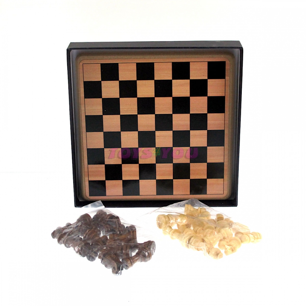Luxusní dřevěné šachy. Královská hra je určena pro dva hráče. Součástí balení je dřevěná deska, 32ks dřevěných figurek, návod.Rozměr: 21x21cm. Věk: 6+