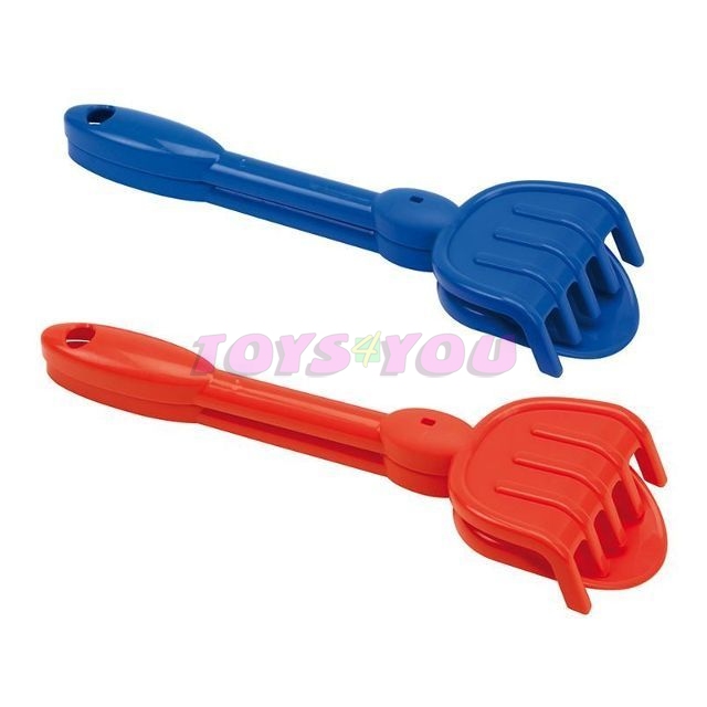 Lopatka a hrábě do písku jsou dlouhé 30 cm. V barvě modré. Věk: 1+
