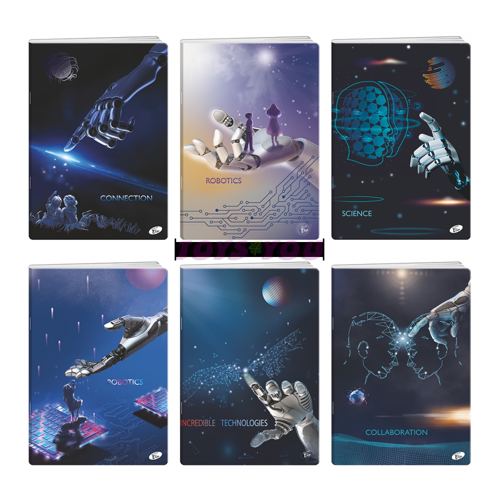 Kolekce kvalitních sešitů s obrázky robotů na obálce. kvalitní sešit nejen pro studenty série fotografií pejsků a kočiček na obálkách lesklá lakovaná obálka formát A4, 40 listů, linkovaný gramáž: 80 g/m2 6 různých motivů vyrobeno v EU