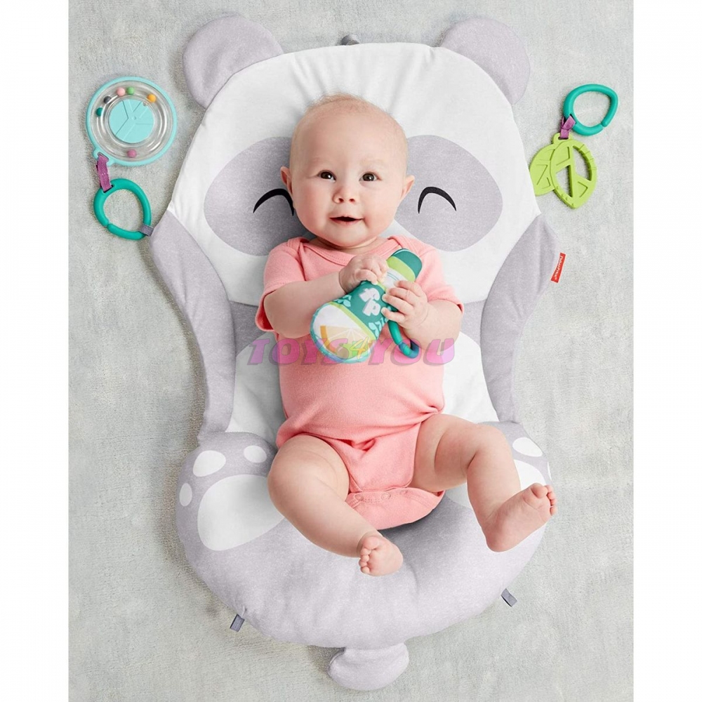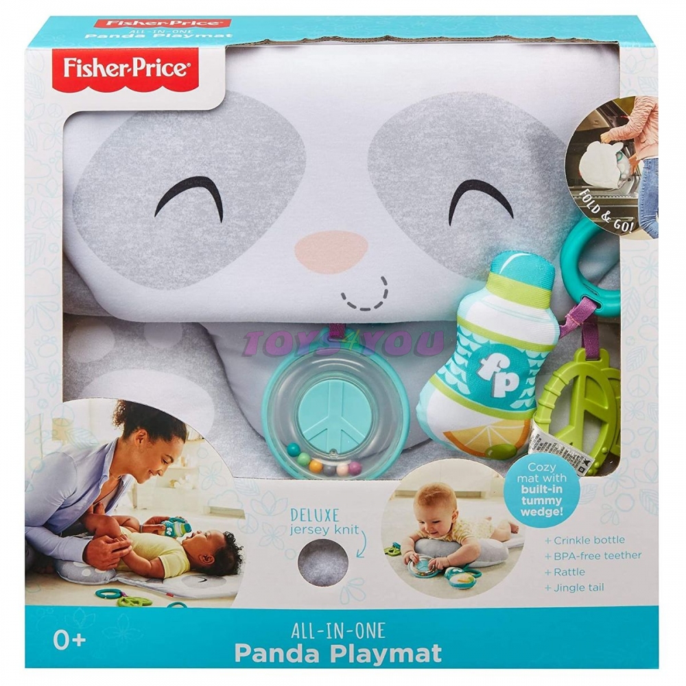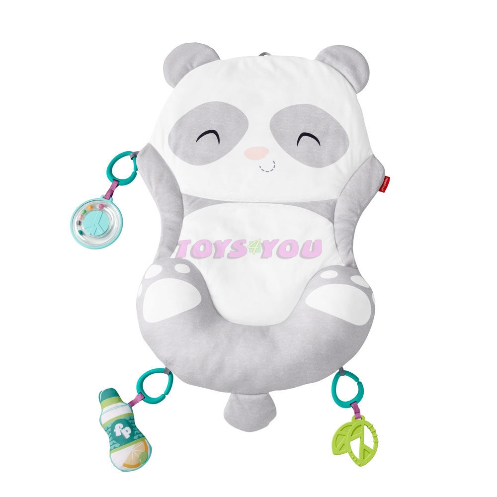 Fisher-Price Hrací dečka panda poskytne vašemu děťátku skvělé místo, kde může pást koníčky a zažít spoustu zábavy doma nebo na cestách. Plyšová a tvarovaná podložka má vestavěný měkký klínek, který pomáhá podepřít vaše maličké během pasení koníčků. Součástí jsou čtyři vzrušující aktivity pro vaše děťátko, které je může zvesela objevovat. Zahrnují chrastítko ve tvaru znaku míru, kousátko ve tvaru lístečku, šustící lahvičku na vodu a veselý zvuk rolniček vycházející z pandina ocásku. Když už musíte jít, snadno dečku zabalíte a vezmete za praktické držátko. Tato hrací dečka ideálně rozvíjí všechny smysly vašeho děťátka včetně hrubé motoriky, která je velmi důležitá pro jeho malé rostoucí svaly. věk 0+