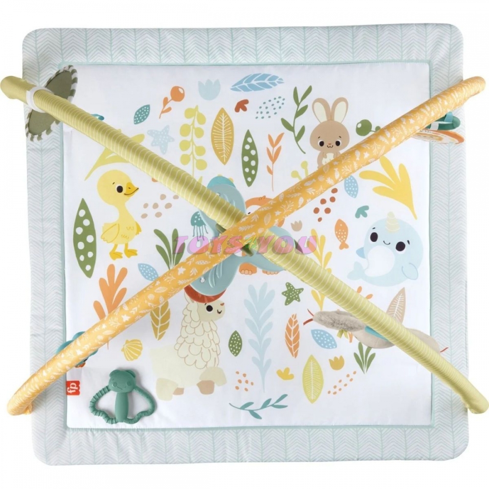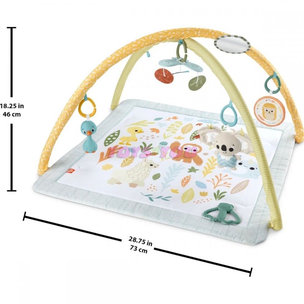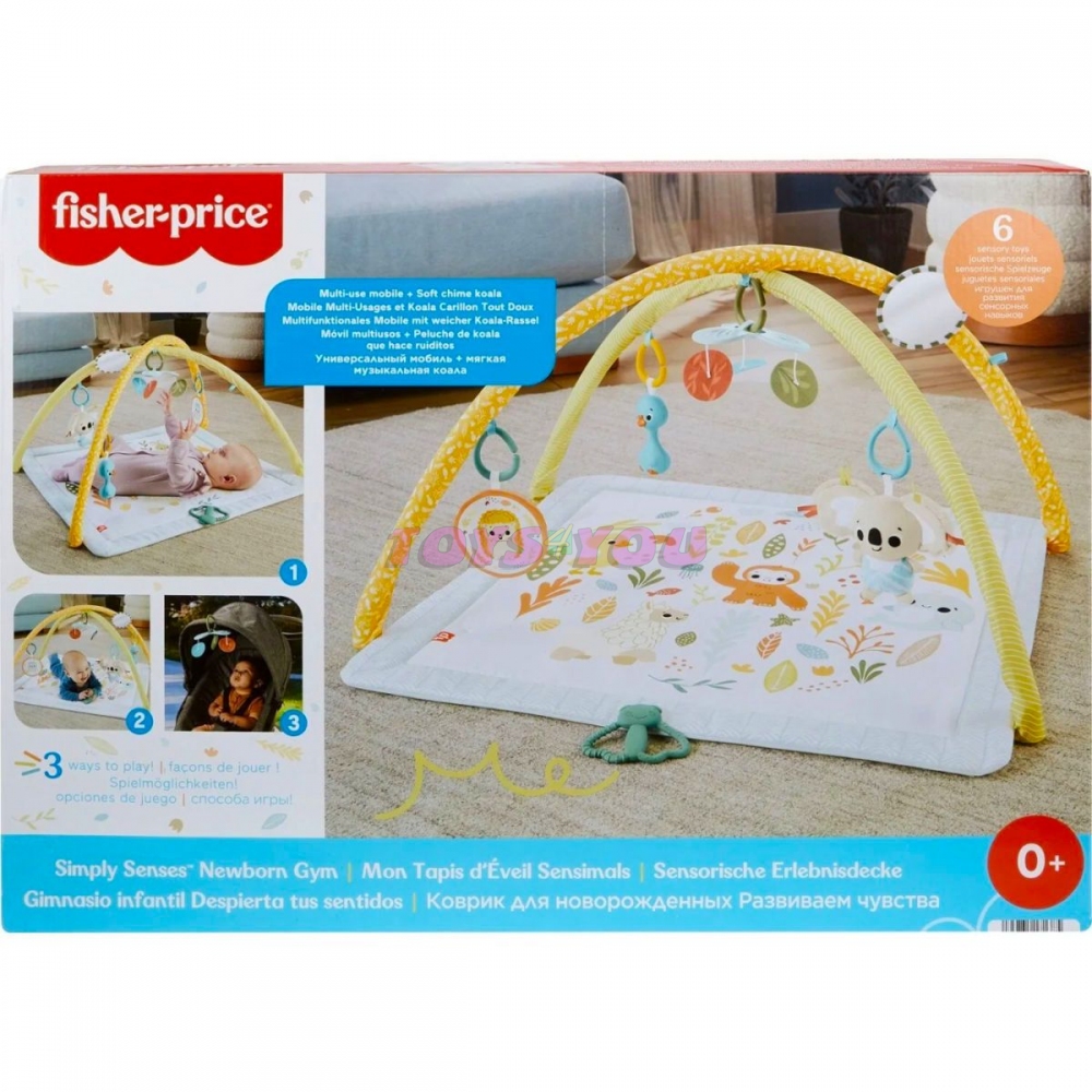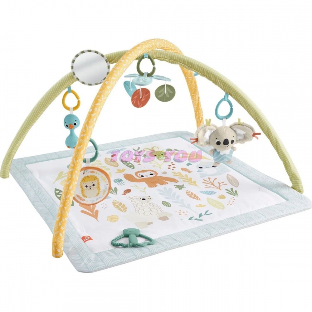 FISHER-PRICE Senzorická zážitková deka Simply Senses – s plyšovou koalou, zrcadlem, chrastítkem, kousacím kroužkem a praskající hračkou, hrací podložka, kterou lze prát v pračce, pro novorozence.