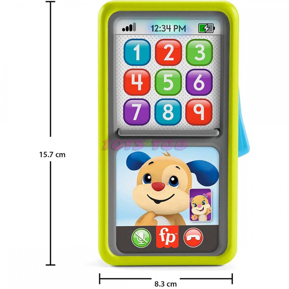 Pejskův chytrý telefon z řady Směj se a Poznávej! od Fisher-Price® je hračka pro nejmenší nabitá tlačítky a písničkami pro zábavu i veselé učení. Hračka vypadá jako skutečný chytrý telefon, takže hra s ním je reálnější. Váš malý objevitel se naučí nové dovednosti a znalosti stiknutím 9 tlačítek pro aktivaci světel a výukového obsahu, který učí tvary, barvy, písmenka, čísla a další! Přesunutím klapky nahoru přepnete do režimu 2 pro další výukový obsah! Telefon přináší celkem 18 způsobů aktivace obsahu stisknutím tlačítka. Modré tlačítko na boku hračky navíc nabízí další zábavu pro malé prstíky, které ho můžou zkoušet přepínat.Věk 9 měs +