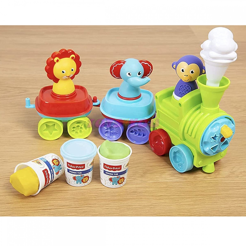 Plastová mašinka se zvířtky o rozměru cca 35 x 19 x 8 cm. Součástí balení jsou i 3 kusy barevné modelíny. Kolečka vláčku slouží jako formičky a zvířátka jsou razítka. Rozměr balení cca 43 x 13 x 25 cm. Věk 3+