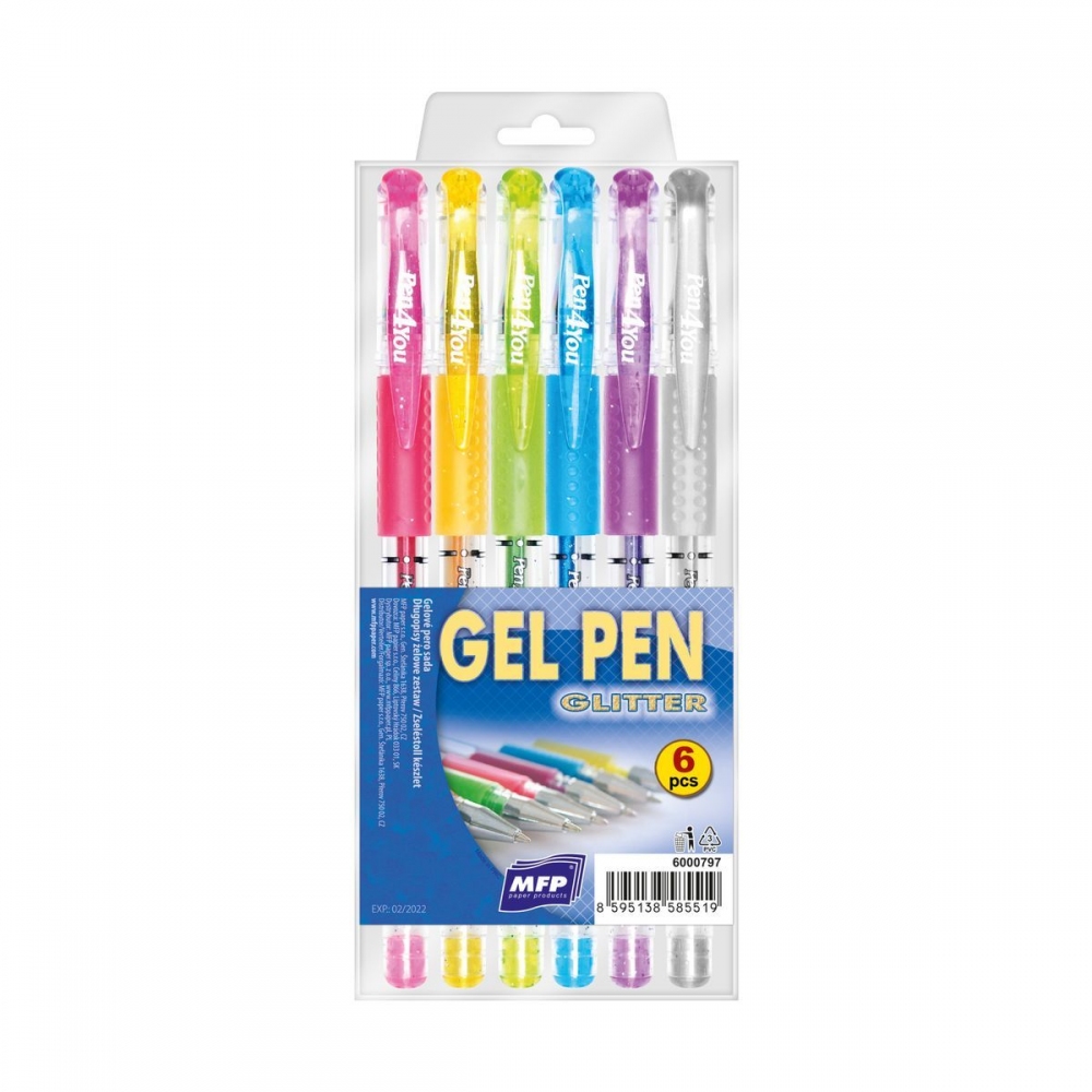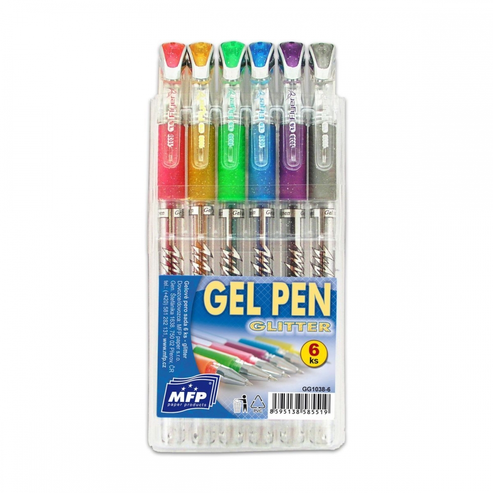 Sada 6 ks gelových per s odstíny barev pro třpytivé písmo.