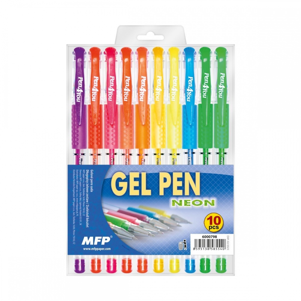 Sada 10 ks gelových per v neonových barvách.