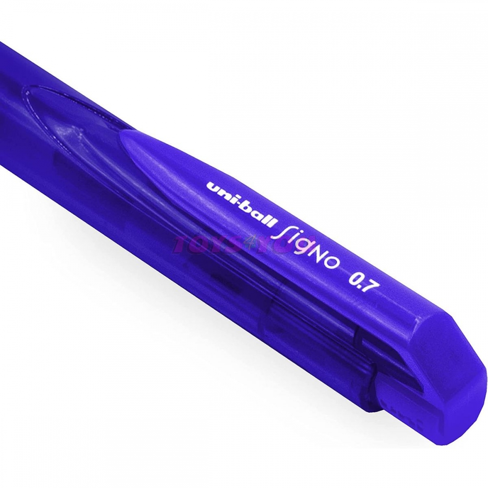 Špičkový gelový roller se stiskací mechanikou a inovativním hrotem. Hrot z nerezové oceli je zaoblený a bez hran, čímž se sníží tření o papír a je zajištěno hladké a plynulé psaní. Jednoduše řešený design. Hladké poloprůhledné tělo v barvě inkoustu s pogumovaným úchytem a klipem. Barva je sytá a lesklá, gel vytéká plynule a nehrudkuje. Inkoust Uni Super Ink je silně pigmentový, rychleschnoucí, nerozmazává se, vysoce hladký a voděodolný. Roller s tekutou náplní s obsahem dokumentního inkoustu je vhodný pro psaní oficiálních dokumentů. Vyrobeno v Japonsku.