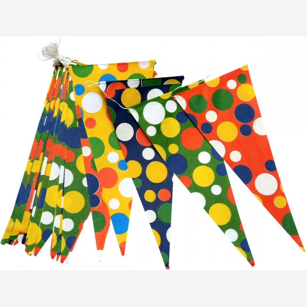 Pestrobarevné vlaječky jsou spojeny šňůrkou. Zavěste je za oba konce přes místnost dle Vaší libosti. Girlandy jsou oblíbeným doplňkem pro výzdobu místností. Touto girlandou nezkazíte dekoraci na žádné party, ať už se bude jednat o narozeninovou párty pro děti nebo pro dospělé. Zaručeně upoutá pozornost všech zúčastněných. Rozměr: 260mm x 120mm x 3mm (Š x V x H)