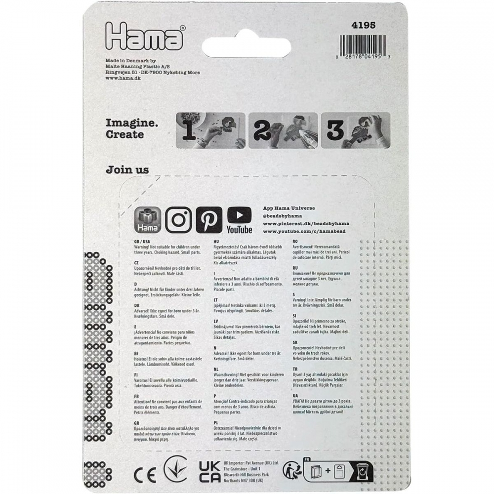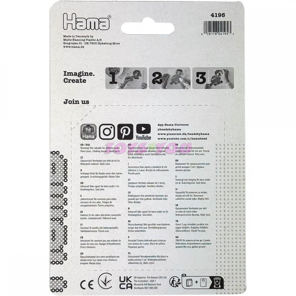 Korálkový set Mořská panna. Tvořivé hračky, certifikované, se zárukou kvality, oceněné několika cenami. Pomůcka k procvičení fantazie, zručnosti, trpělivosti, rozeznávání tvarů a barev, motoriky atd. Děti ani netuší, že dělají něco více než že si jen hrají. Balení obsahuje: cca 450 kusů zažehlovacích korálků, podložka H322 dinosaurus, zažehlovací papír. Průměr korálku: 5 mm. UPOZORNĚNÍ: Nevhodné pro děti do 3 let. Nebezpečí vdechnutí. Obsahuje malé části. Vyrobeno v Dánsku. Váha 0.05 kg Délka 0.02 m Šířka 0.12 m Výška 0.18 m Věk: 3+