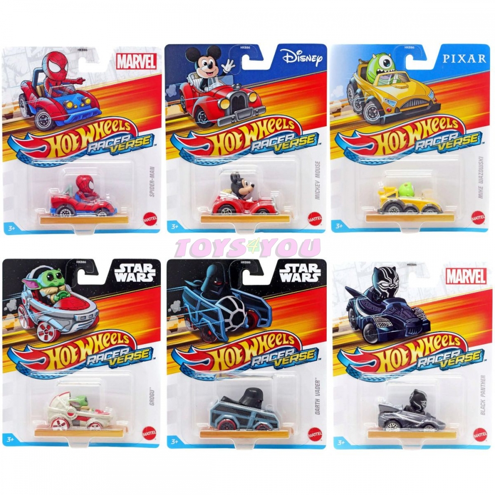 Vozidla Hot Wheels RacerVerse umisťují oblíbené postavičky z legendárních zábavních zařízení na sedadla řidiče stylizovaných autíček odlévaných pod tlakem. Každé vozidlo je v měřítku 1:64, má skvělý, neodnímatelný charakter a je optimalizováno pro výkon na trati. Vyberte si z ikonických figurek, jako je Spider-Man, Vanellope, Buzz Lightyear a další! Fanoušci a sběratelé je budou chtít všechny. Každý se prodává samostatně, v závislosti na dostupnosti. Barvy a dekorace se mohou lišit. Fanoušci Hot Wheels a popkultury získají dvojitou dávku úžasnosti s vozidly Hot Wheels RacerVerse, která obsahují legendární postavy jako řidiči sběratelských tlakově litých aut! Každé vozidlo je navrženo pro závodění na tratích Hot Wheels RacerVerse. K dispozici je řada postav od Disney, Pixar, Marvel a Star Wars, které osloví všechny fanoušky a sběratele. Vozidla Hot Wheels RacerVerse obsahují autentické detaily, které jsou věrné původnímu charakteru a neodmyslitelně patří ke značce Hot Wheels. Tato autíčka jsou skvělými dárky pro sběratele a děti od 3 let. Budou je chtít získat všechny. (Každý se prodává samostatně.) Obsahuje 1 tlakově lité vozidlo Hot Wheels RacerVerse. Cena za 1 kus. Věk: 3+