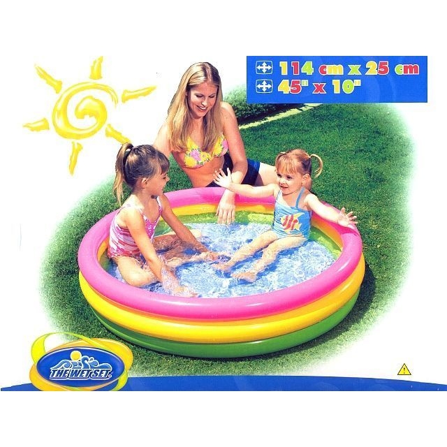 Dětský nafukovací bazén tříkruhový. Měkká nafukovací podlaha. Součástí opravná sada. Rozměr: 114x25 cm. Věk: +3 let