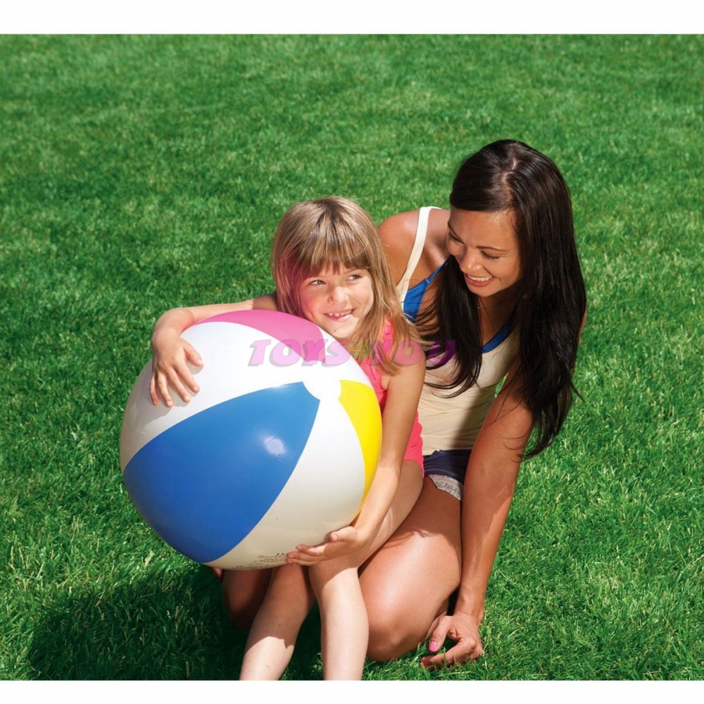 Nafukovací míč o průměru 61 cm. Nafukovací hračky a potřeby Intex splňují nejpřísnější bezpečnostní normy na zpracování a použité materiály. Věk: 3+