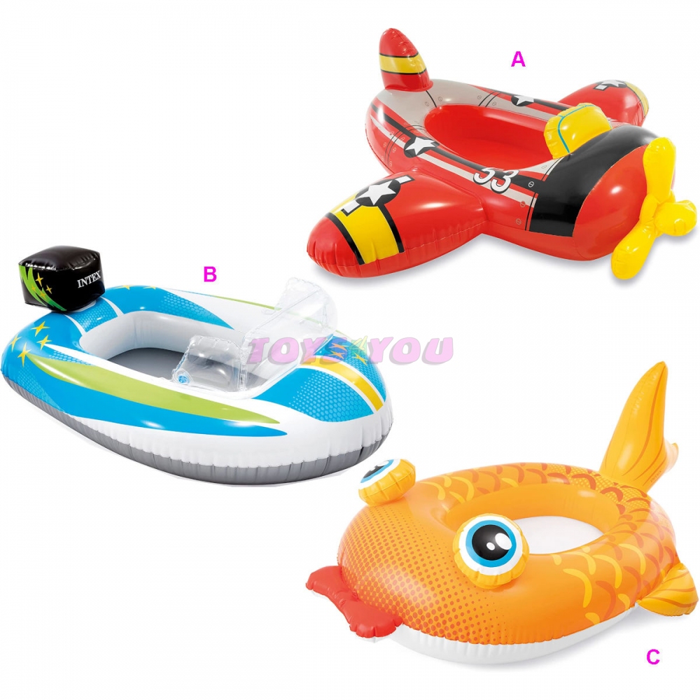 Nafukovací člun různé motivy. Rozměr: taxi 102 x 72 cm, ryba 107 x 69 cm, letadélko 107 x 94 cm. Věk: 3-6 let