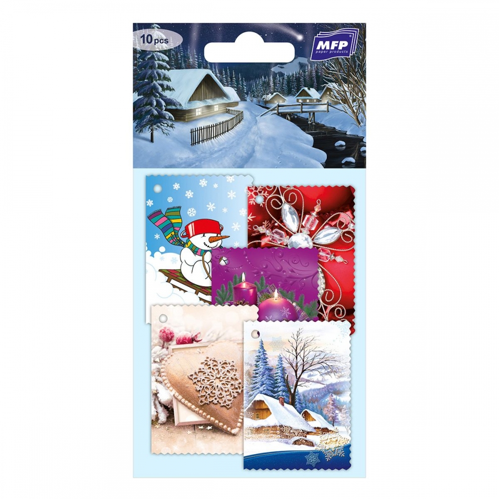 Jmenovky na Vánoční dárky s výsekem. Balení obsahuje 10 kusů jmenovek. Rozměr balení 165x90 mm