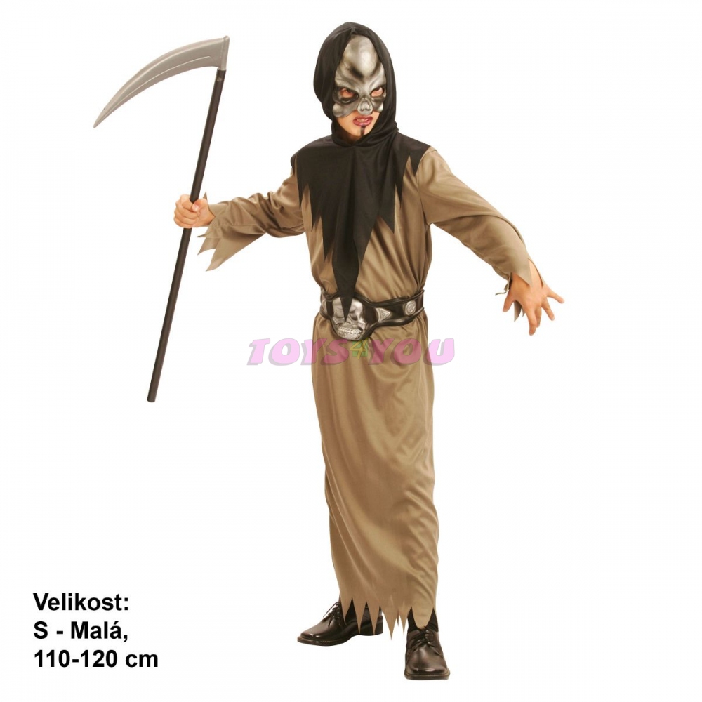 Chystáte se s dítětem na karneval, dětskou párty nebo na významnou kostýmovou událost ve škole či školce? Potom je na místě důkladný výběr vhodného kostýmu. Zkuste se zamyslet, jaký konkrétní převlek vystihne dětskou osobnost, významnou vlastnost, jaký kostým vašemu dítěti bude nejvíce slušet. Bude to kostým komiksového hrdiny, pohádkový kostým, převlek znázorňující nějaké povolání anebo krásné šaty pro princeznu? Při výběru kostýmů a tvorbě případných doplňku zažijete s dítětem spoustu zábavy. Odměnou vám i vašemu dítěti bude radost a spousta zážitků. Staňte se společně hvězdou karnevalu. Karnevalový kostým - Smrtka. Velikost: malá (110 - 120 cm). Doporučený věk: 4-6 let. Obsahuje: - roucho s kapucí a opaskem. - masku. Neobsahuje: - kosu. - boty. Velikost 110-120 Věk: 4-6 let